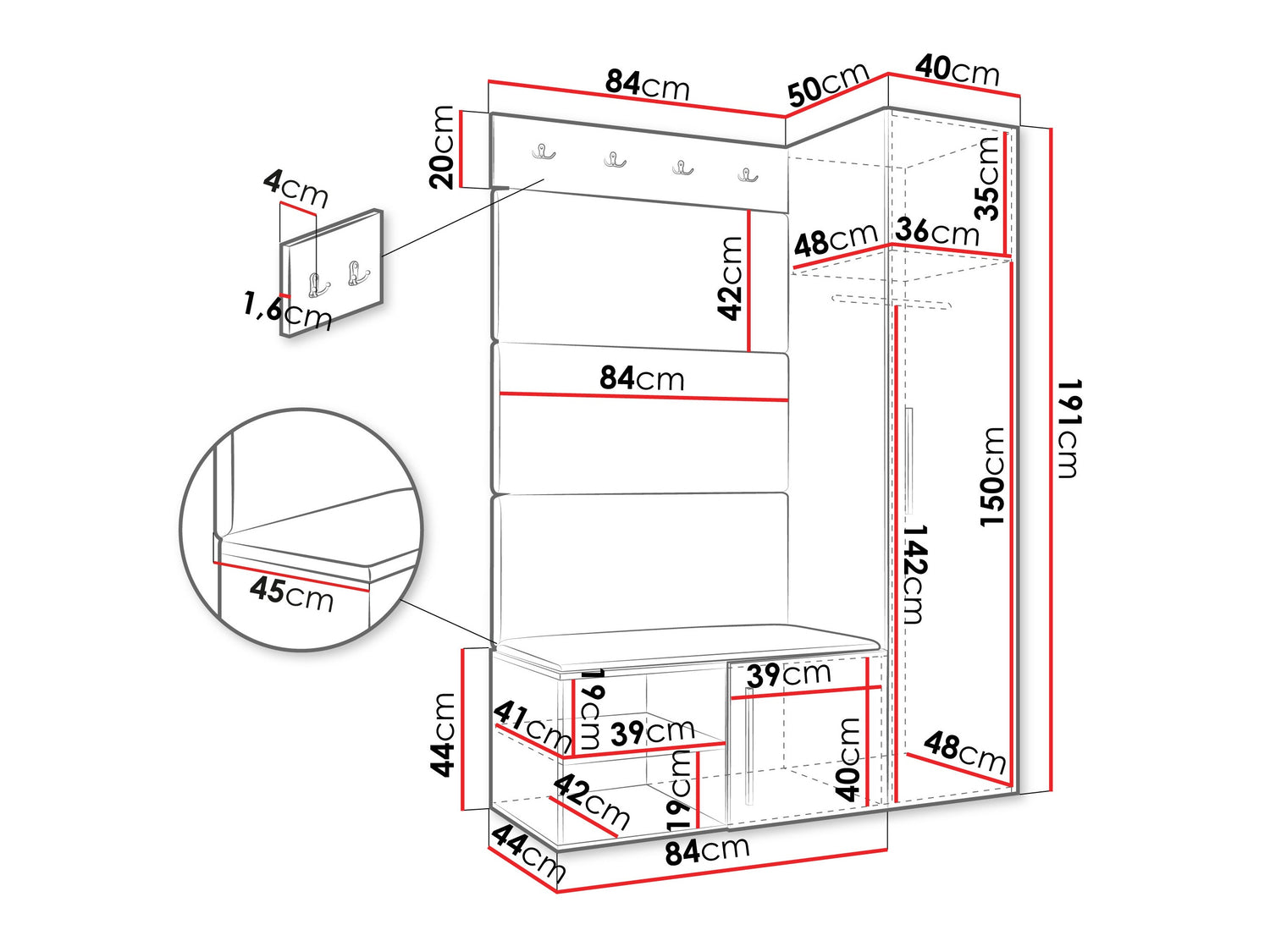 Előszoba garnitúra Garderoba MEDI II, Keret színe: Kasmír, Puha falpanel színe: Manila 35