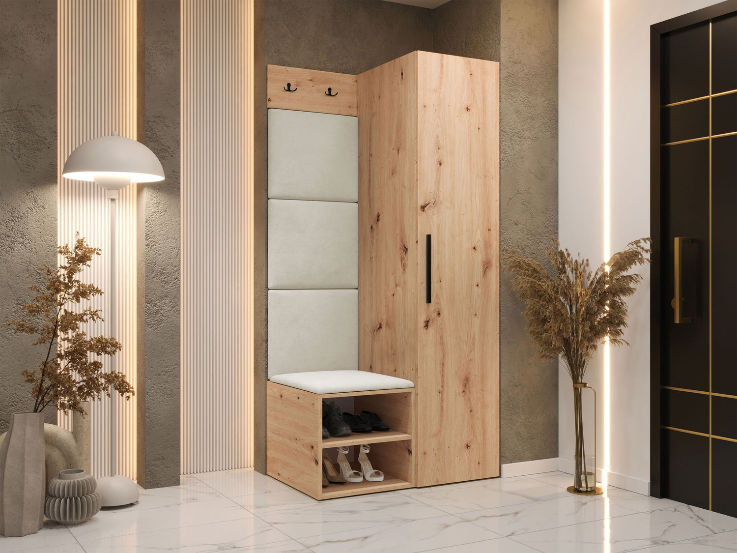 Előszoba garnitúra Garderoba MEDI III, Keret színe: Artisan tölgy, Puha falpanel színe: Manila 02