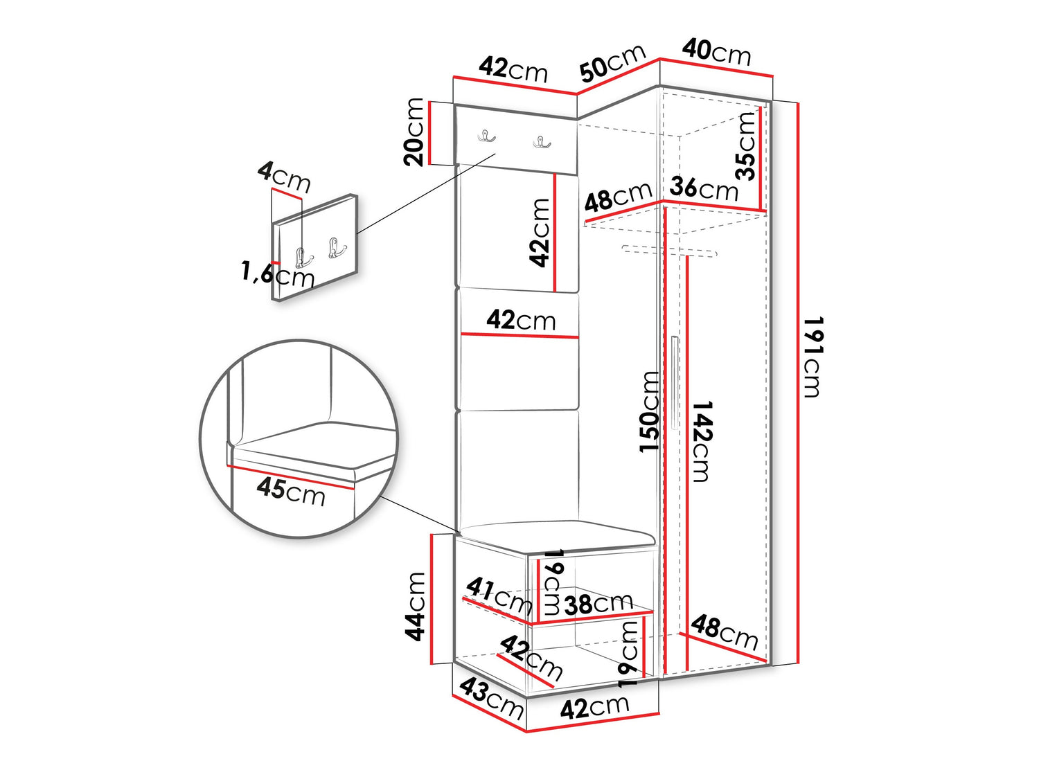 Előszoba garnitúra Garderoba MEDI III, Keret színe: Artisan tölgy, Puha falpanel színe: Manila 04