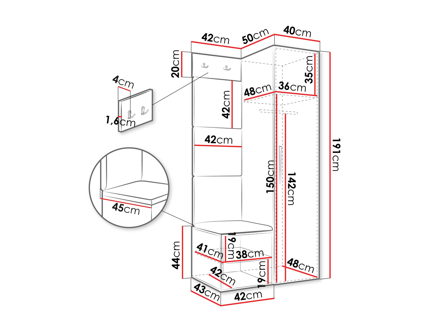 Előszoba garnitúra Garderoba MEDI III, Keret színe: Artisan tölgy, Puha falpanel színe: Manila 11