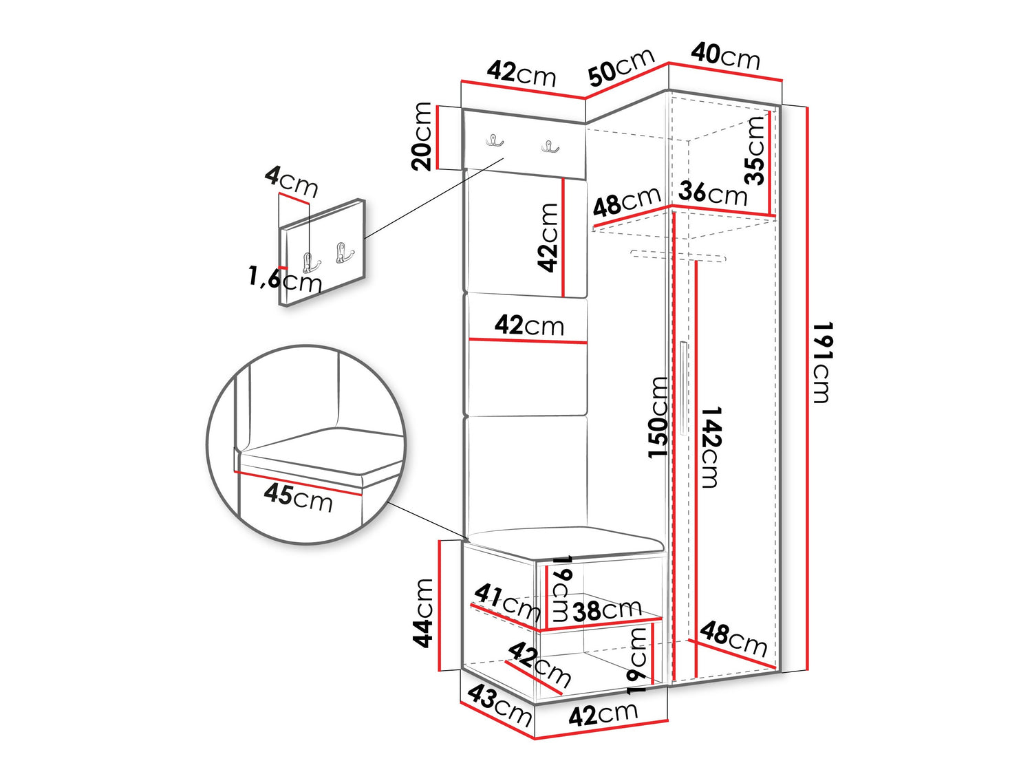 Előszoba garnitúra Garderoba MEDI III, Keret színe: Artisan tölgy, Puha falpanel színe: Manila 16