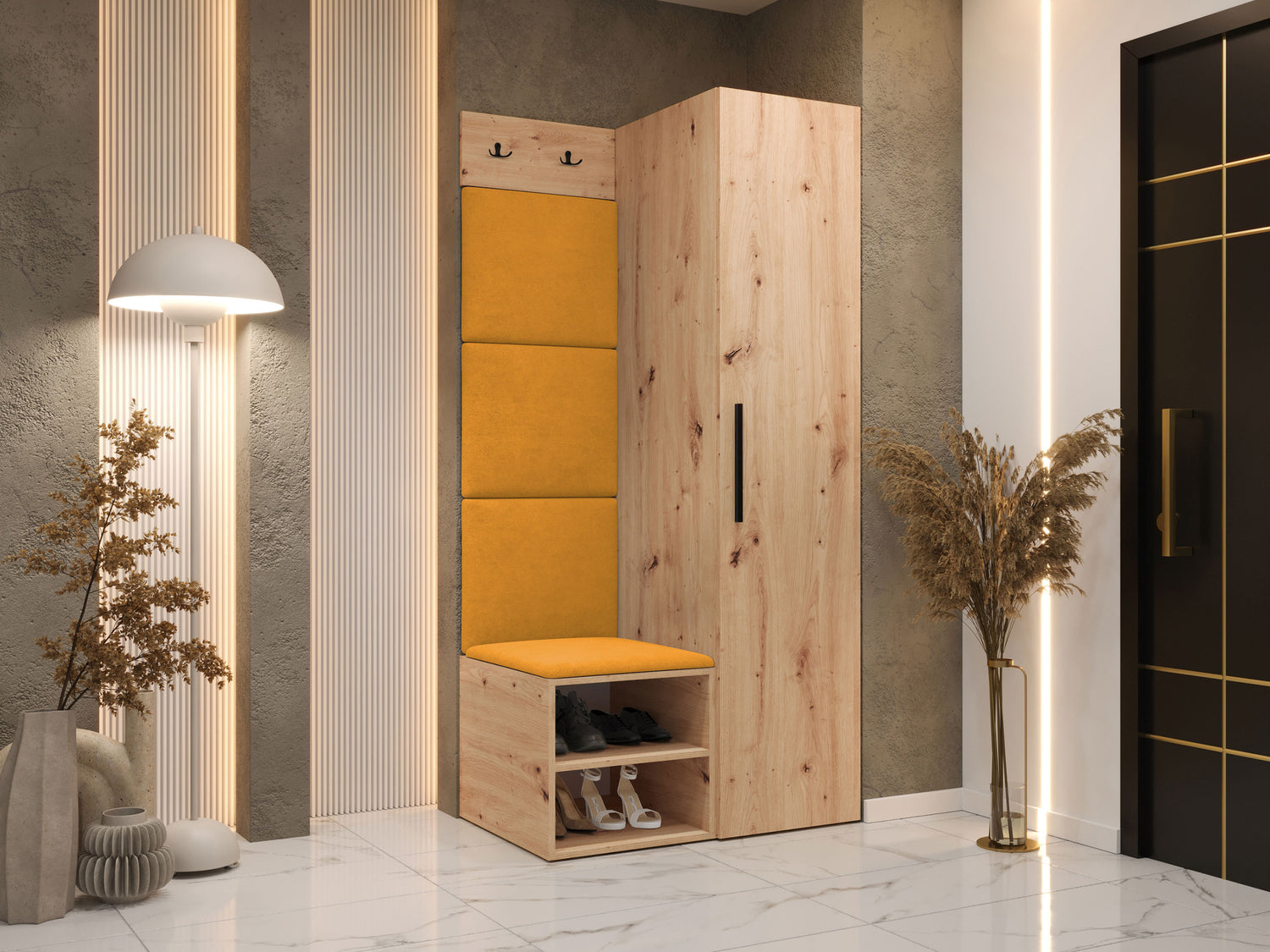 Előszoba garnitúra Garderoba MEDI III, Keret színe: Artisan tölgy, Puha falpanel színe: Manila 32