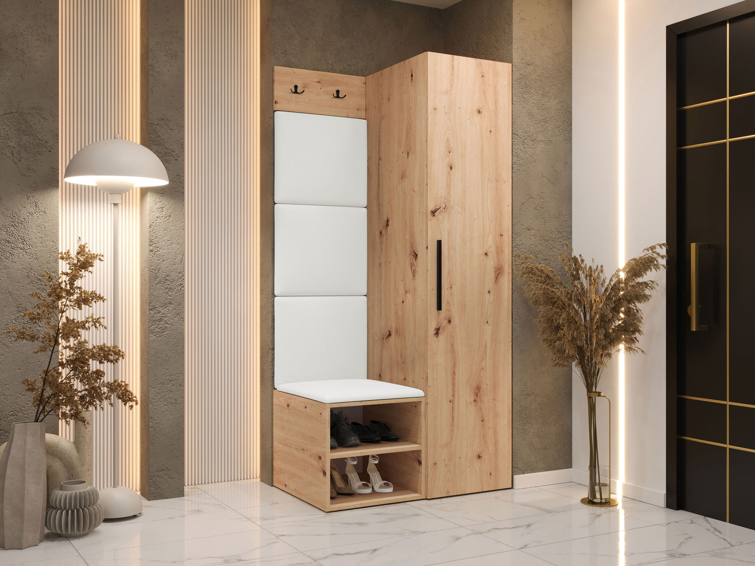 Előszoba garnitúra Garderoba MEDI III, Keret színe: Artisan tölgy, Puha falpanel színe: Soft 017