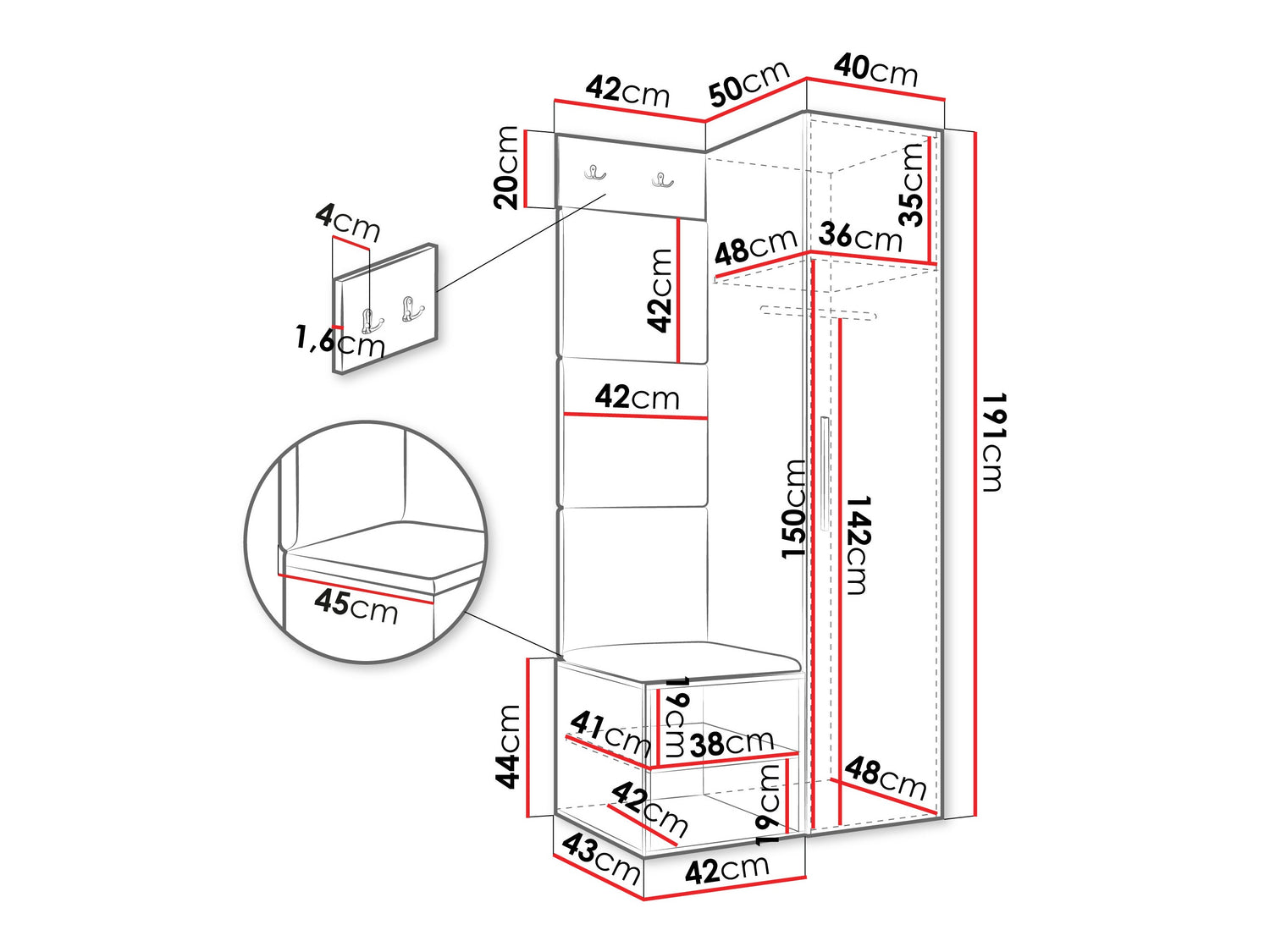 Előszoba garnitúra Garderoba MEDI III, Keret színe: Fehér, Puha falpanel színe: Manila 09