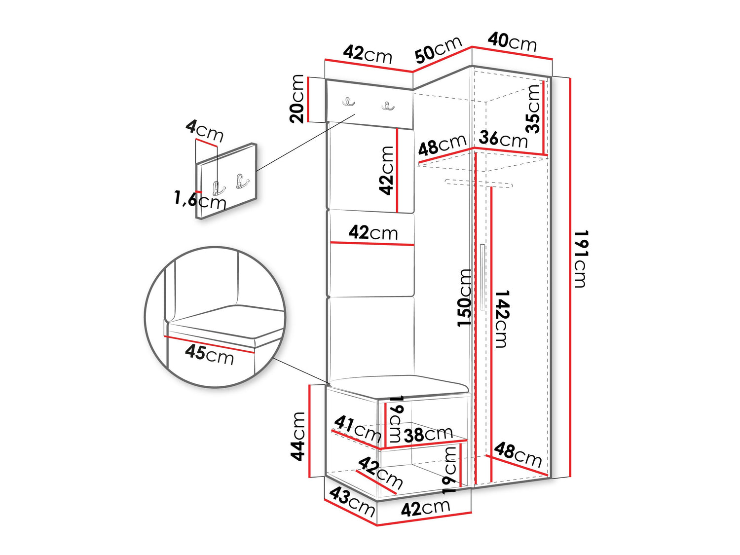 Előszoba garnitúra Garderoba MEDI III, Keret színe: Fehér, Puha falpanel színe: Manila 26