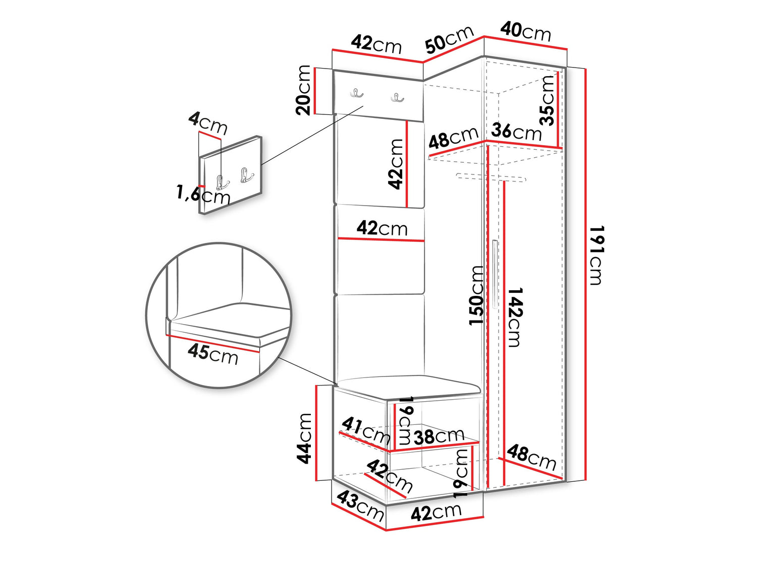 Előszoba garnitúra Garderoba MEDI III, Keret színe: Fehér, Puha falpanel színe: Soft 011