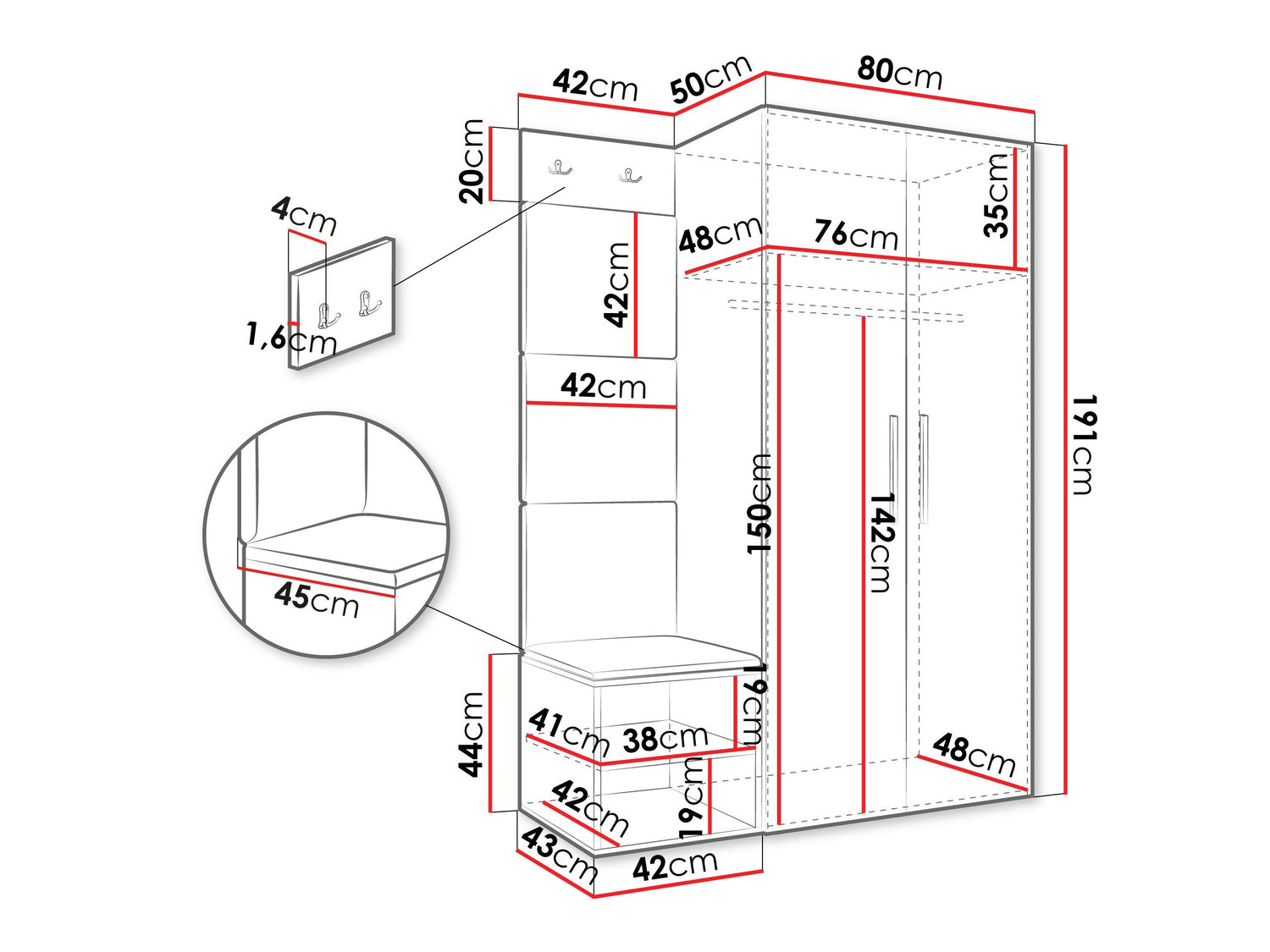 Előszoba garnitúra Garderoba MEDI IV, Keret színe: Artisan tölgy, Puha falpanel színe: Manila 11