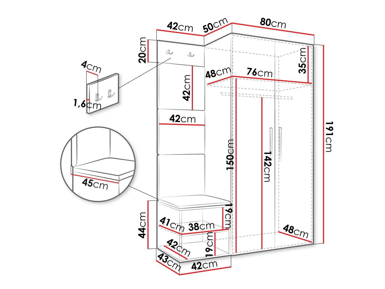 Előszoba garnitúra Garderoba MEDI IV, Keret színe: Artisan tölgy, Puha falpanel színe: Manila 16