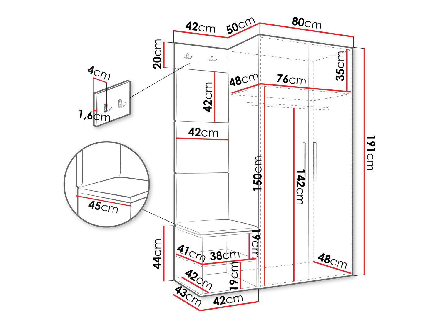 Előszoba garnitúra Garderoba MEDI IV, Keret színe: Artisan tölgy, Puha falpanel színe: Manila 35
