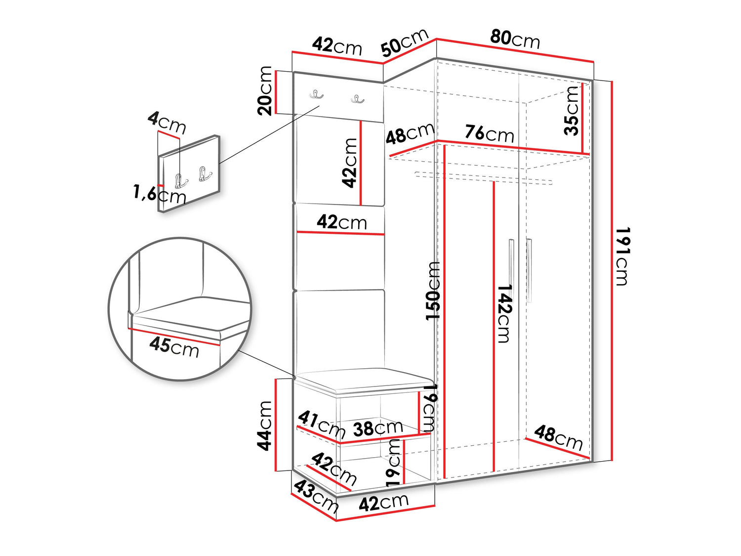 Előszoba garnitúra Garderoba MEDI IV, Keret színe: Kasmír, Puha falpanel színe: Manila 02