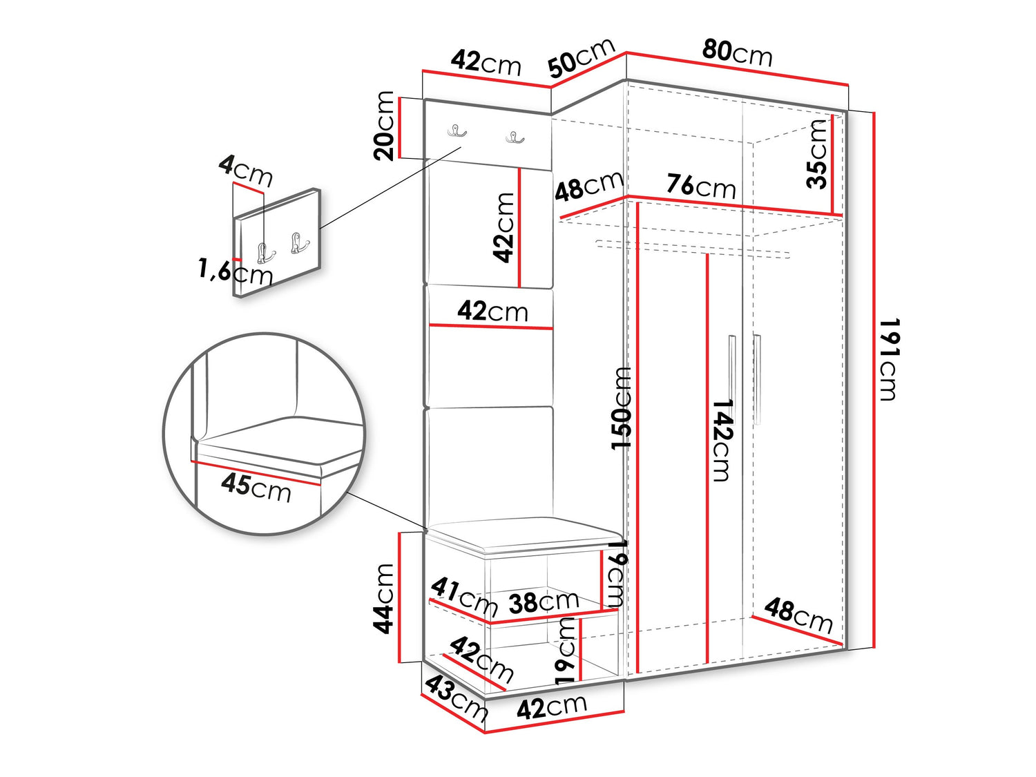 Előszoba garnitúra Garderoba MEDI IV, Keret színe: Kasmír, Puha falpanel színe: Manila 04
