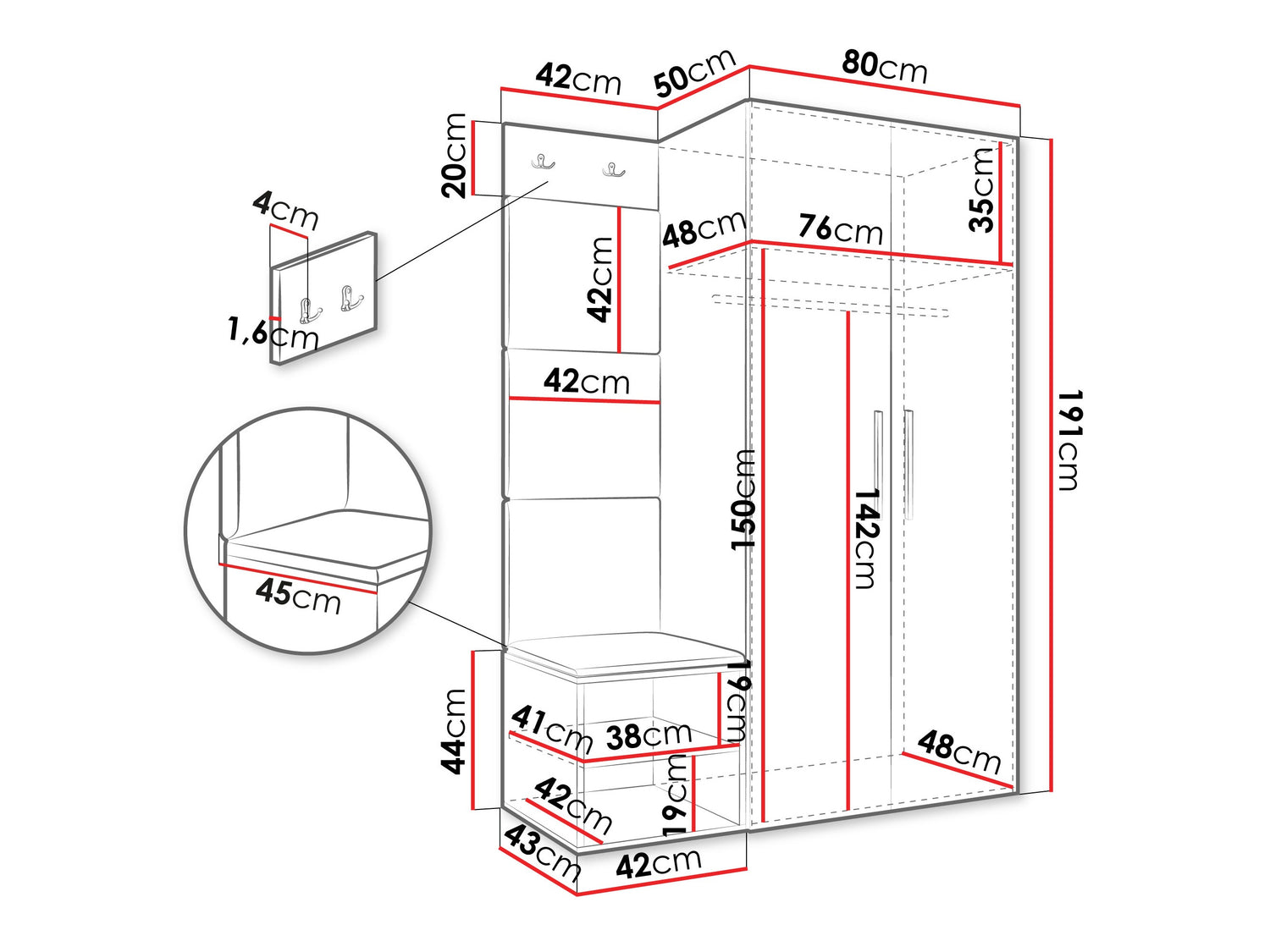Előszoba garnitúra Garderoba MEDI IV, Keret színe: Kasmír, Puha falpanel színe: Soft 017