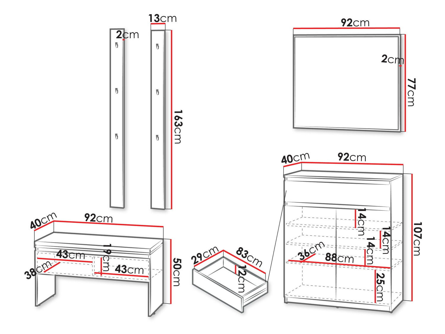 Cipődoboz méretei107 x 92 x 40 x 92 x 40 cm