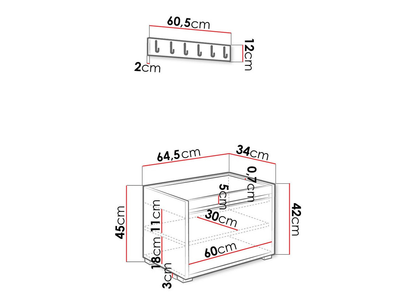 Cipődoboz méretei45 x 64.5 x 34 cm