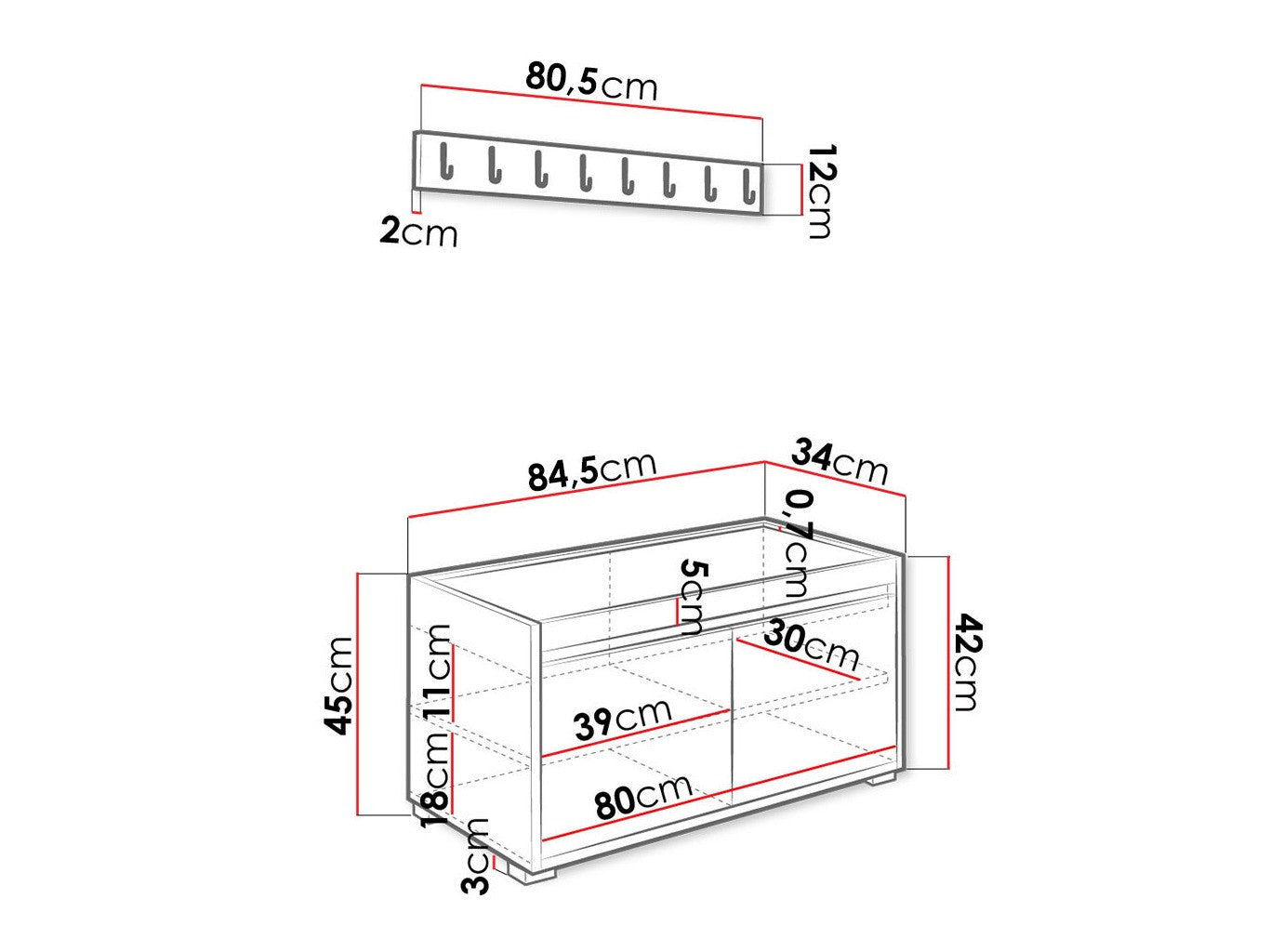 Cipődoboz méretei45 x 84.5 x 34 cm