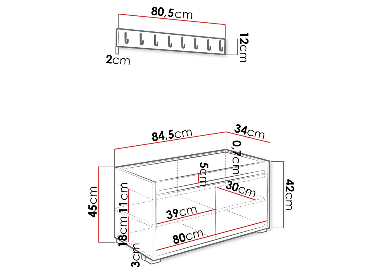 Cipődoboz méretei45 x 84.5 x 34 cm