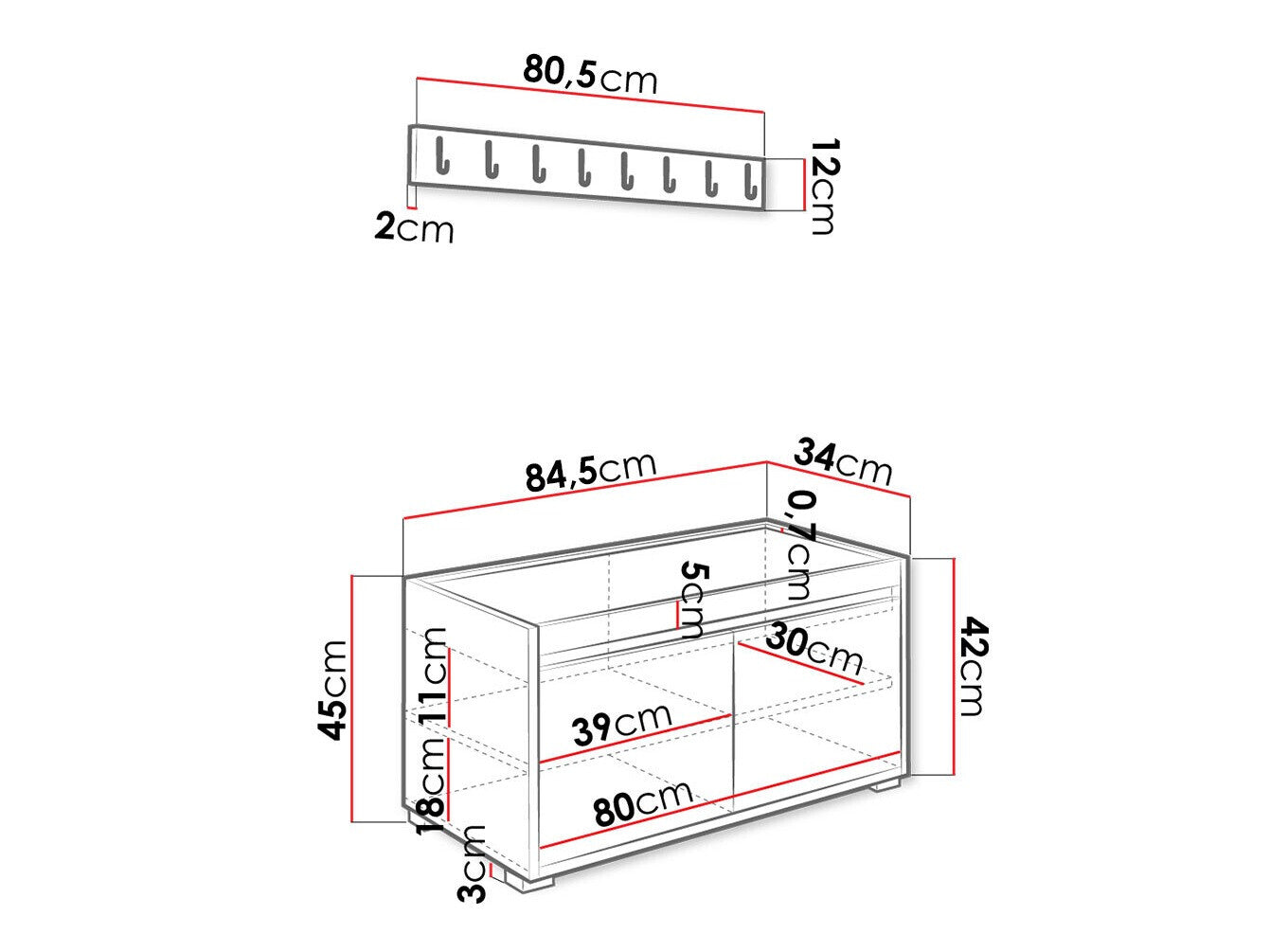 Cipődoboz méretei45 x 84.5 x 34 cm