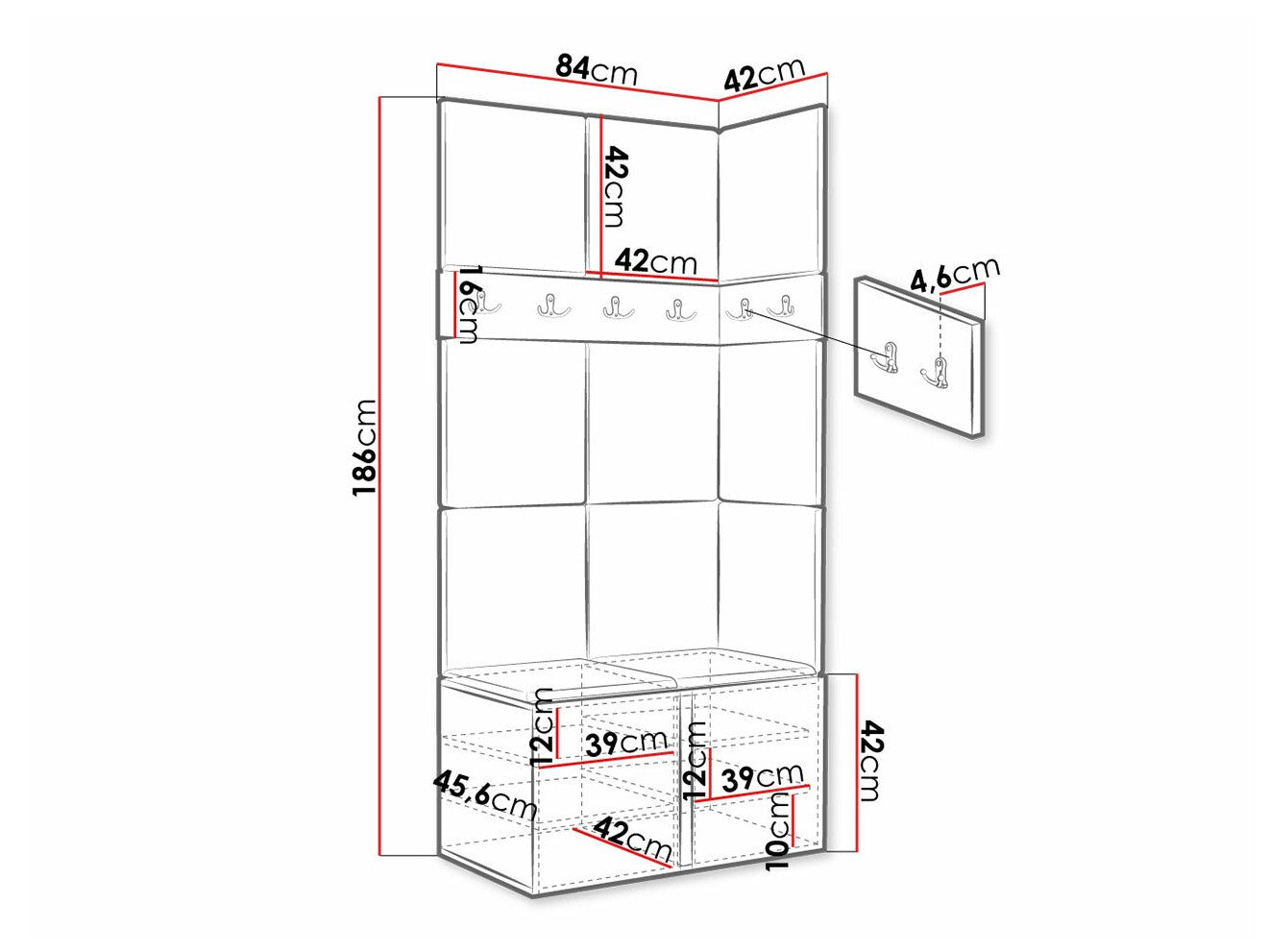 Akasztó méretei16 x 84 x 4.6 x 42 x 4.6 cm