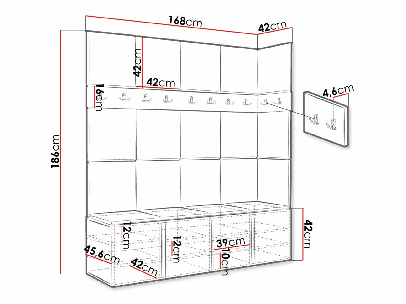 Cipődoboz méretei42 x 168 x 45.6 cm