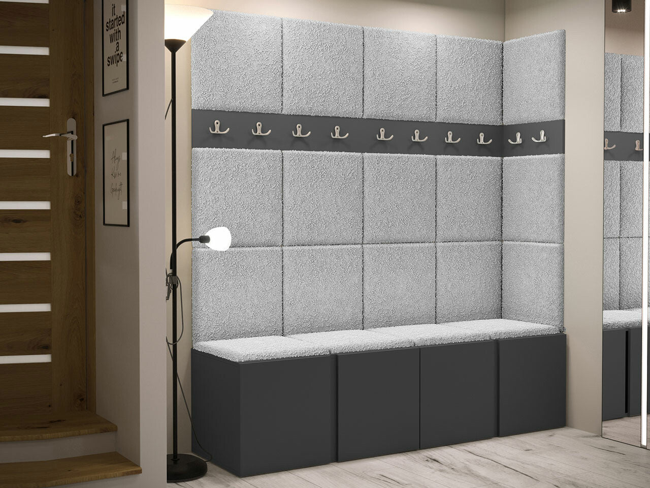 Előszoba garnitúra ORION II (Tavasz II), Keret színe: Grafit, Puha falpanel színe: Abriamo 6