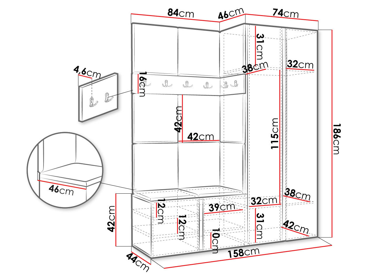 Akasztó méretei16 x 84 x 4.6 x 44 x 4.6 cm