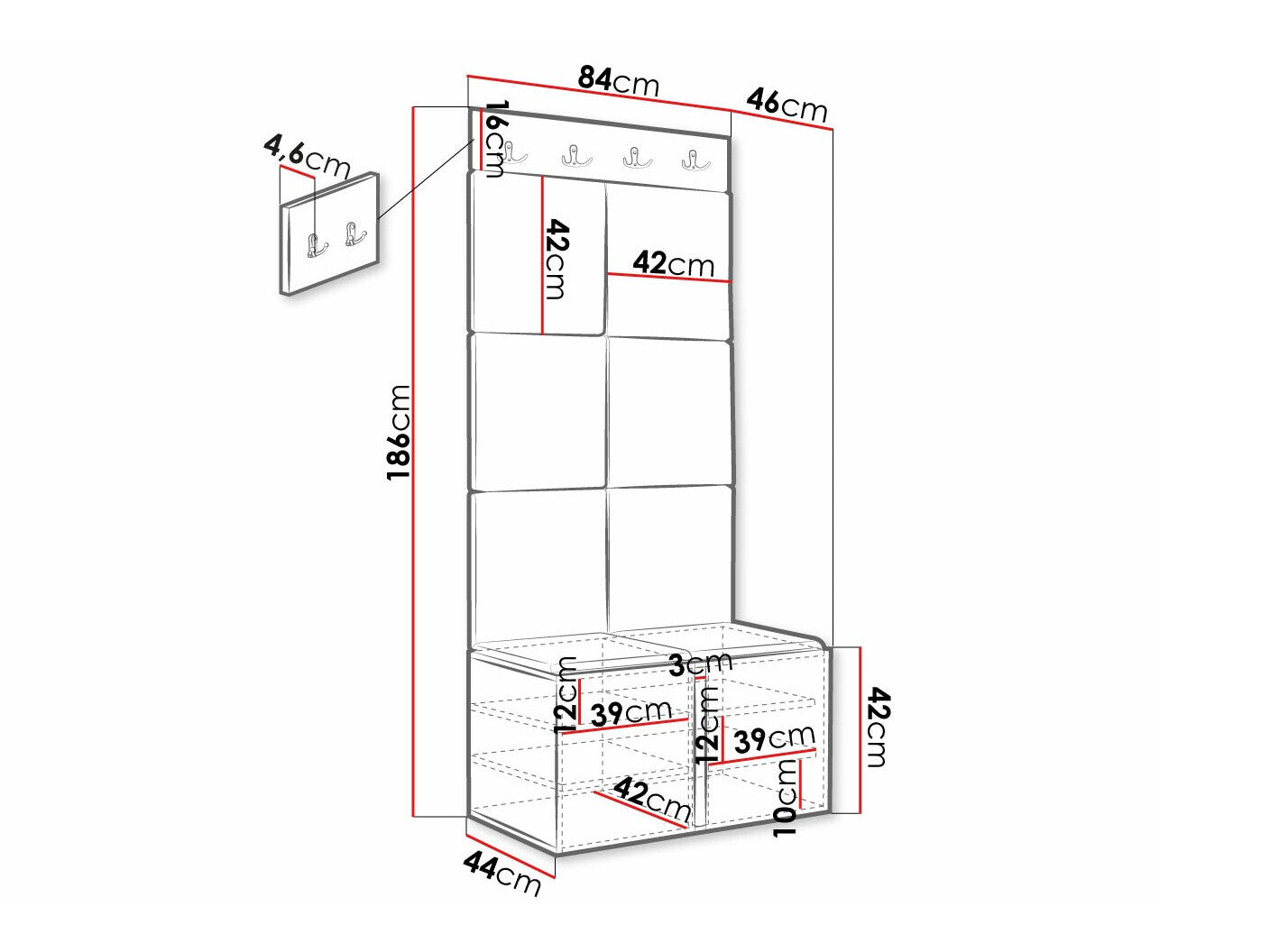 Cipődoboz méretei42 x 84 x 44 cm