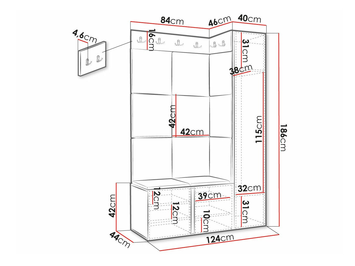 Akasztó méretei16 x 84 x 4.6 x 46 x 4.6 cm