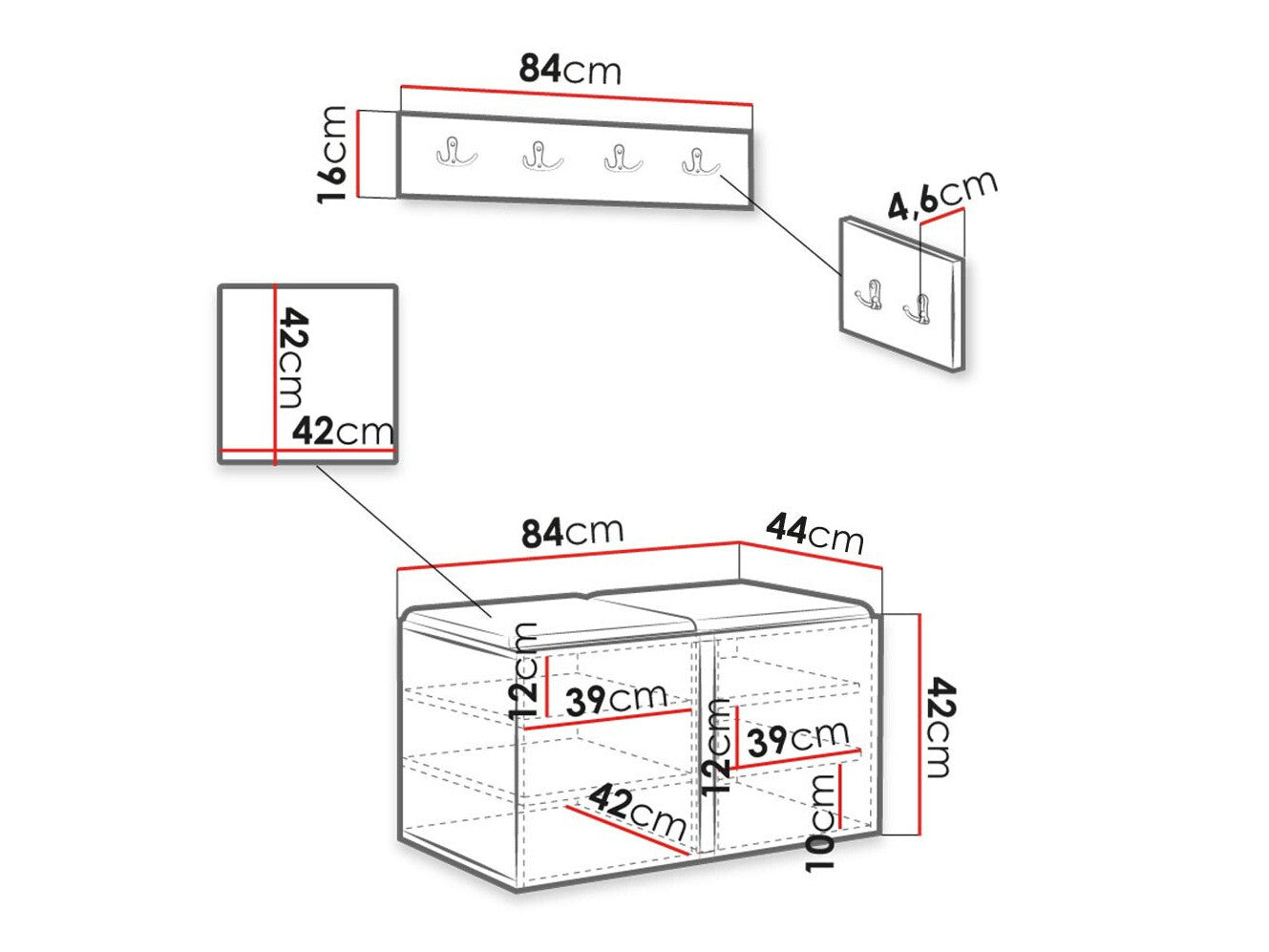 Cipődoboz méretei42 x 84 x 44 cm