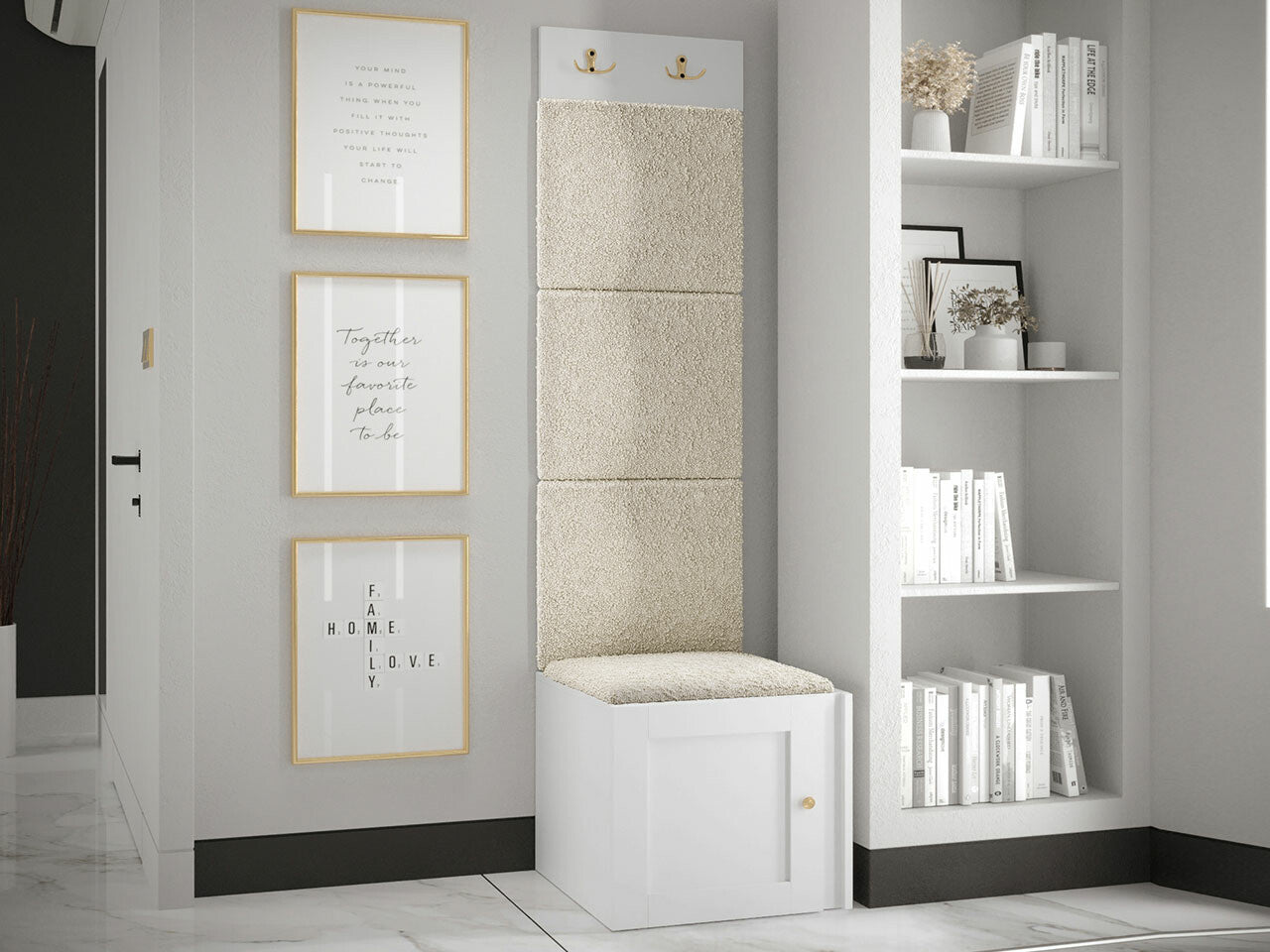 Előszoba garnitúra ORION RYFEL RAMIRO XXII (Terospito), Keret színe: Fehér, Puha falpanel színe: Abriamo 3