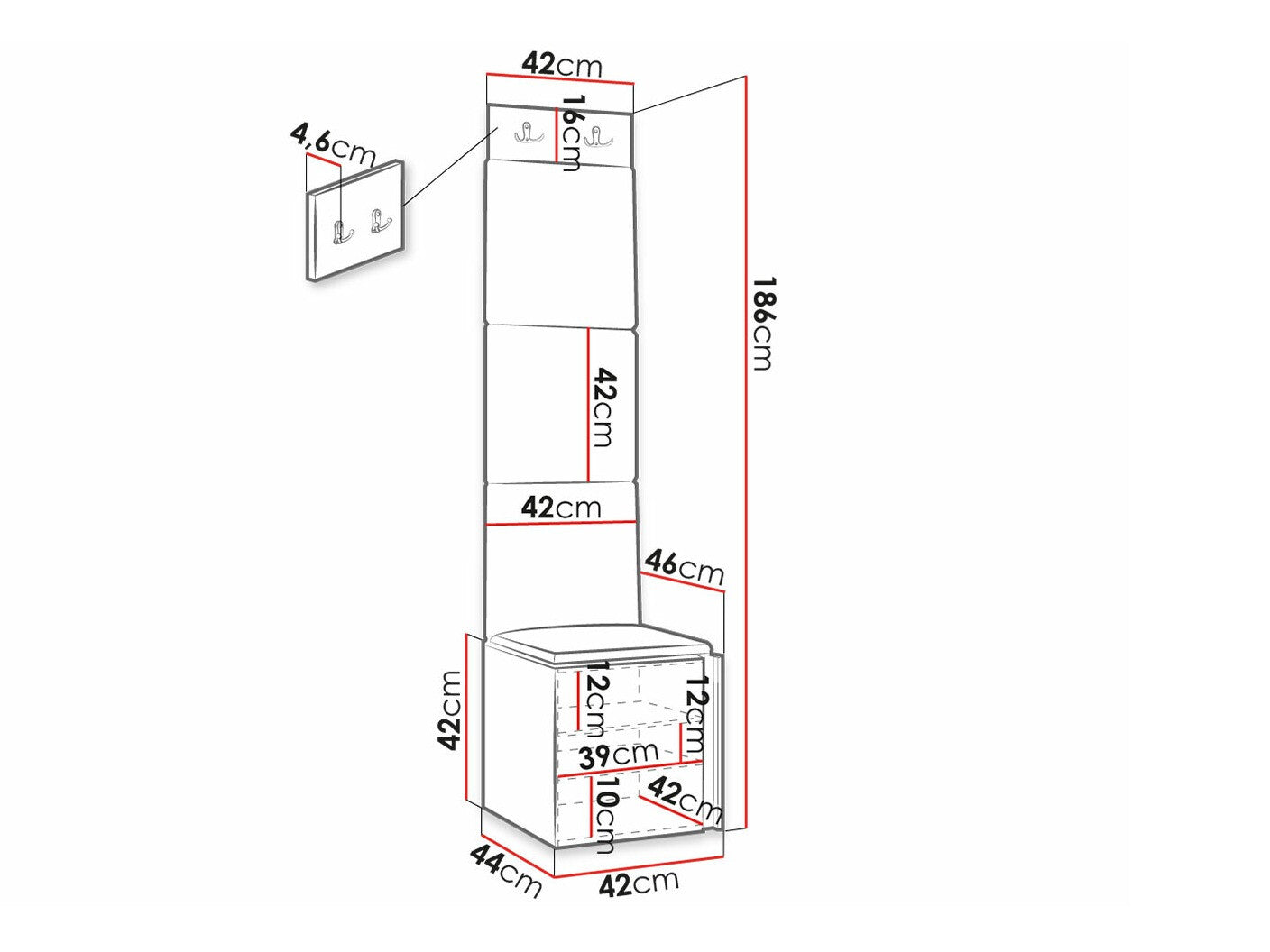 Akasztó méretei16 x 42 x 4.6 cm