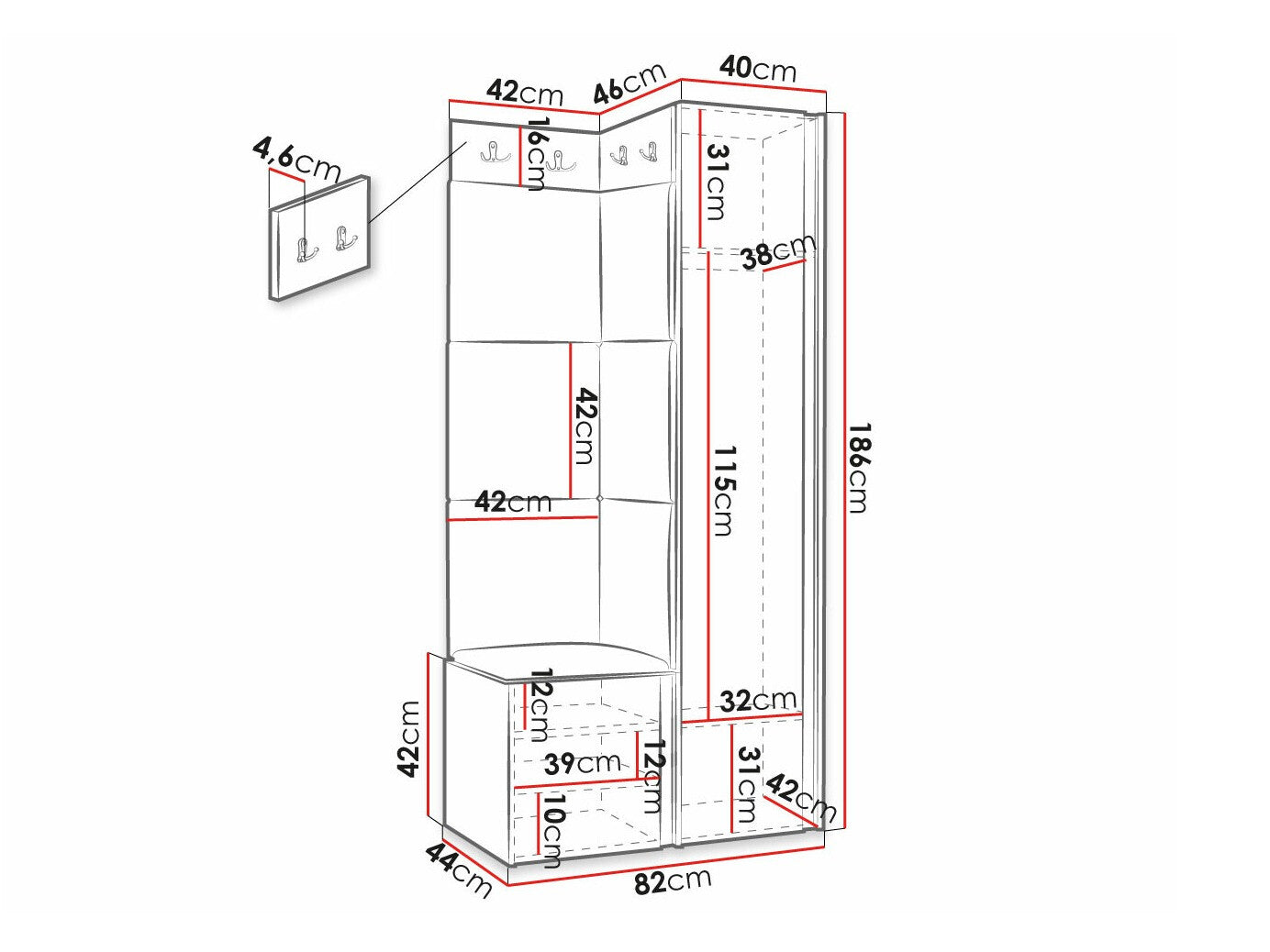 Akasztó méretei16 x 42 x 4.6 x 46 x 4.6 cm