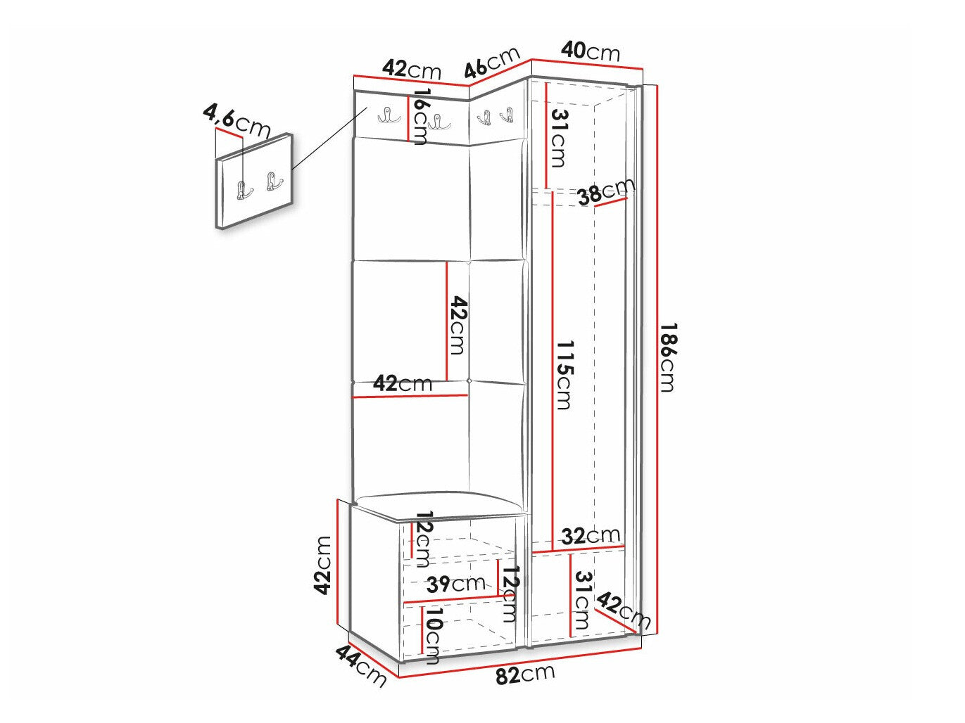 Akasztó méretei16 x 42 x 4.6 x 46 x 4.6 cm