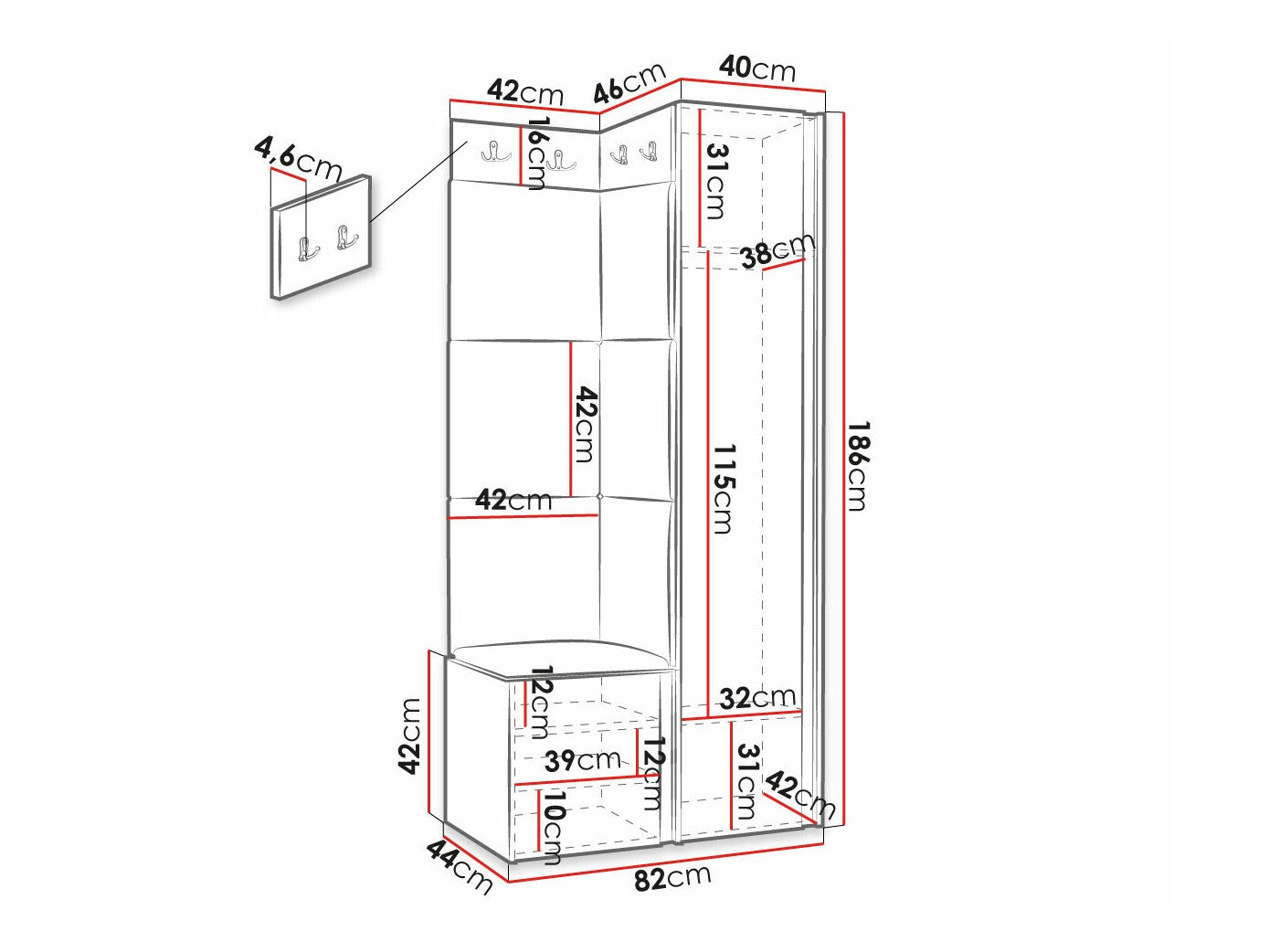 Akasztó méretei16 x 42 x 4.6 x 46 x 4.6 cm