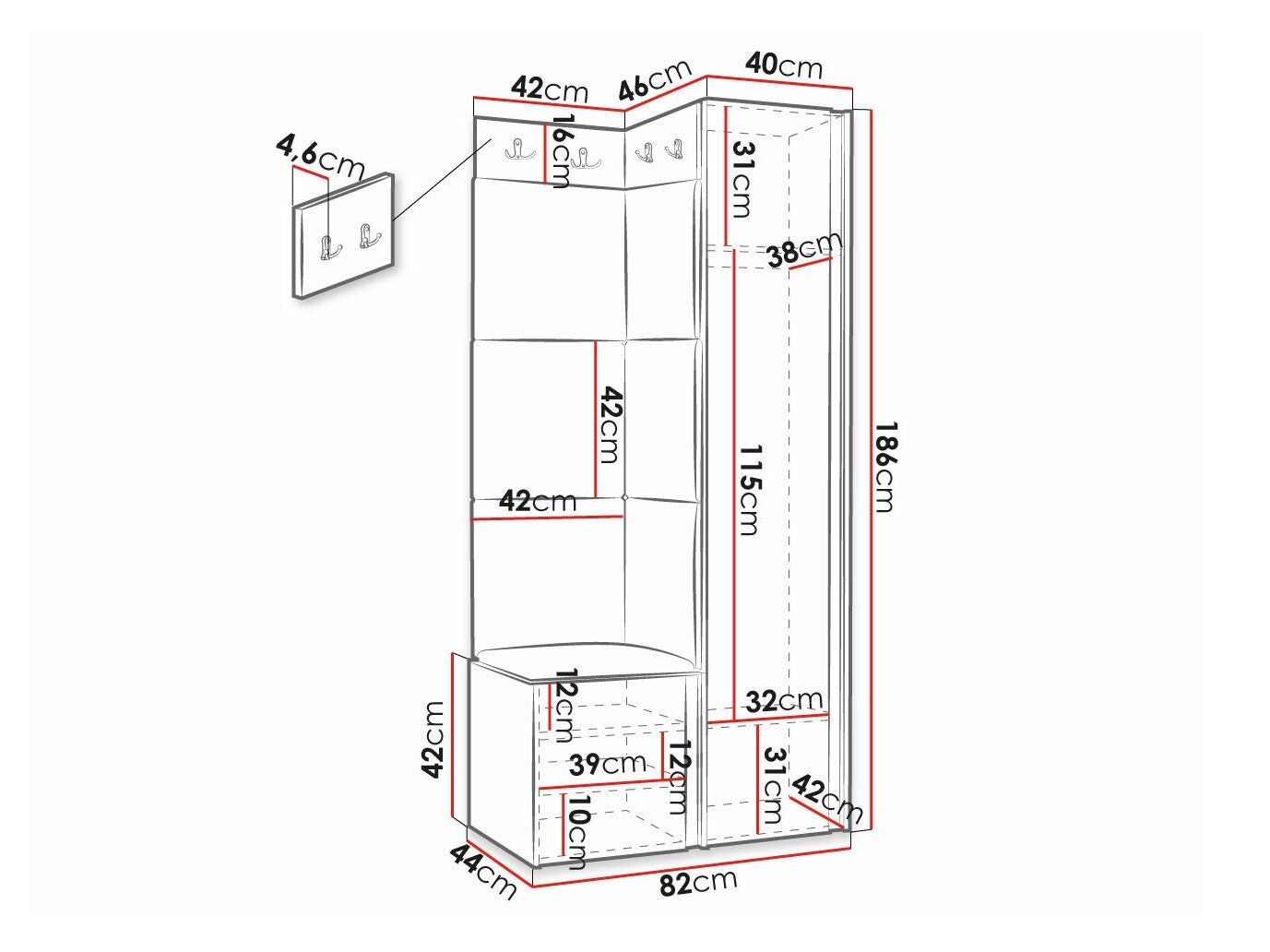 Akasztó méretei16 x 42 x 4.6 x 46 x 4.6 cm