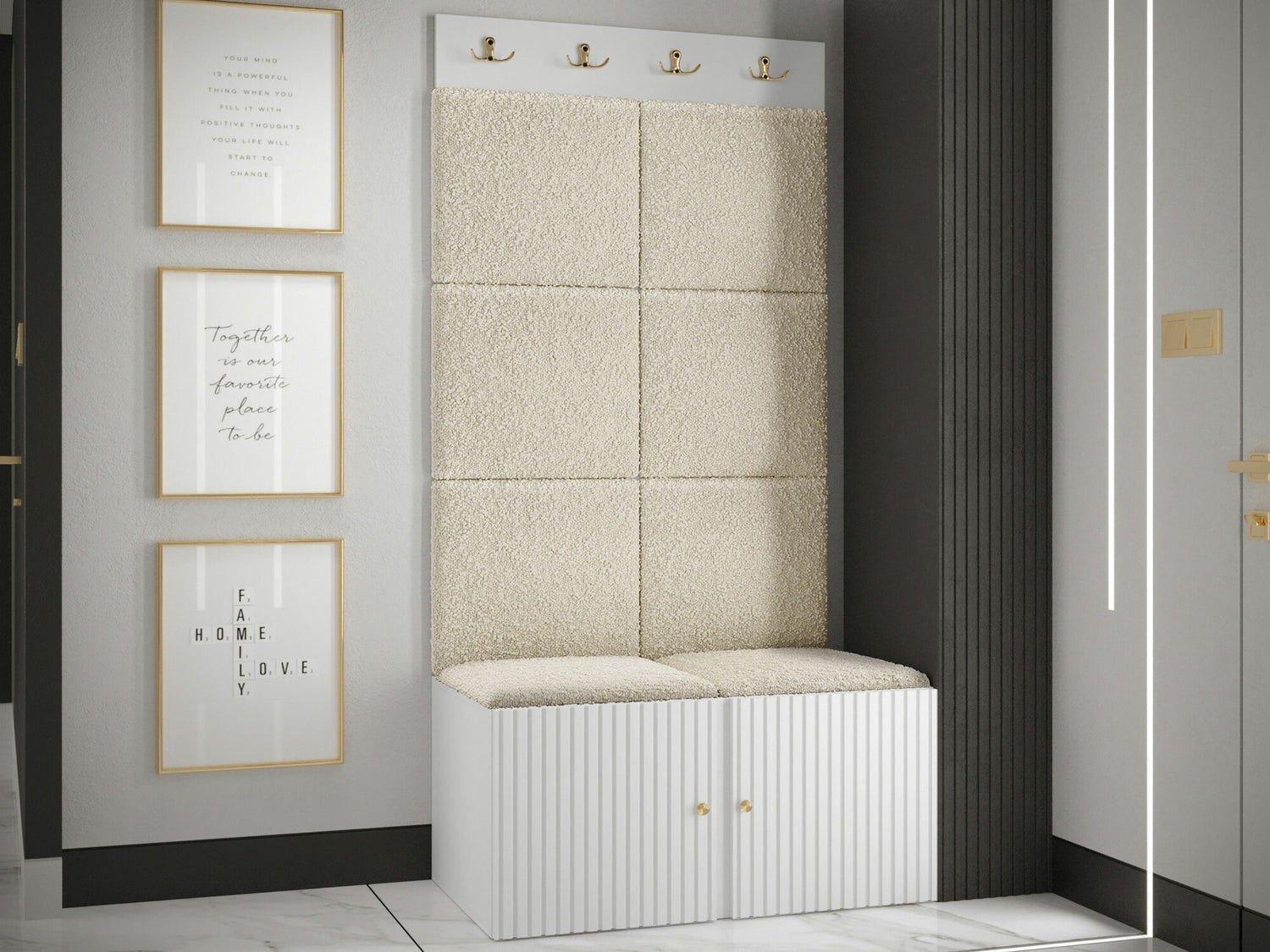 Előszoba garnitúra ORION RYFEL SLIM IV (Towiro), Keret színe: Fehér, Puha falpanel színe: Abriamo 3