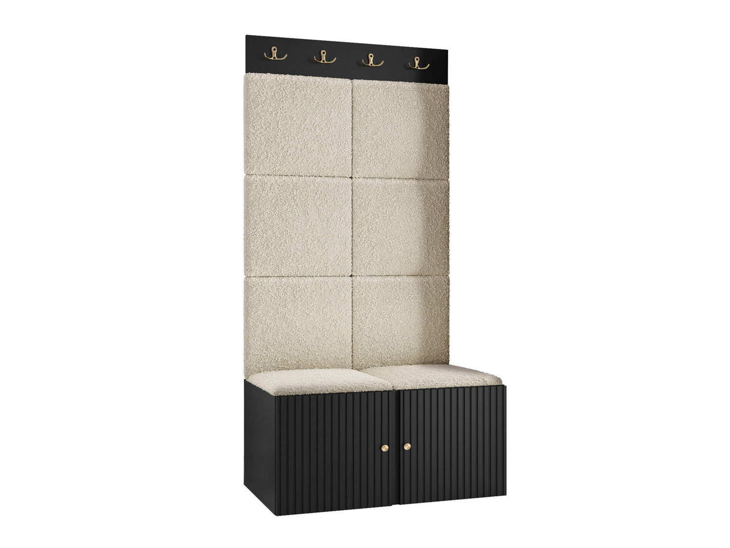 Előszoba garnitúra ORION RYFEL SLIM IV (Towiro), Keret színe: Fekete, Puha falpanel színe: Abriamo 3