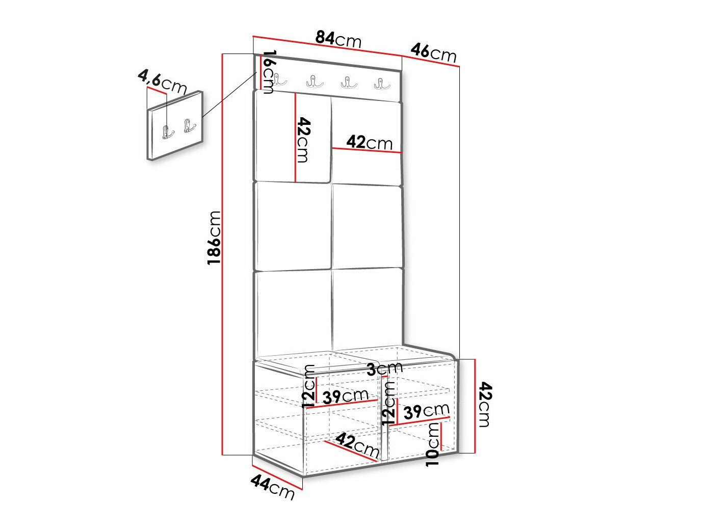 Cipődoboz méretei42 x 84 x 44 cm