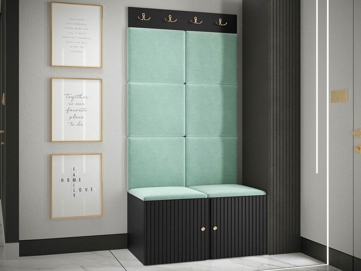Előszoba garnitúra ORION RYFEL SLIM IV (Towiro), Keret színe: Fekete, Puha falpanel színe: Manila 11