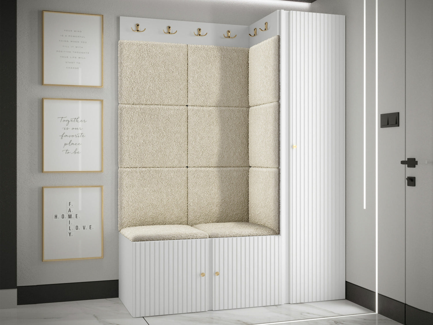 Előszoba garnitúra ORION RYFEL SLIM IX (Towiro), Keret színe: Fehér, Puha falpanel színe: Abriamo 3