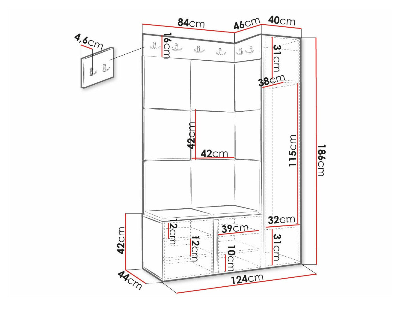 Akasztó méretei16 x 84 x 4.6 x 46 x 4.6 cm