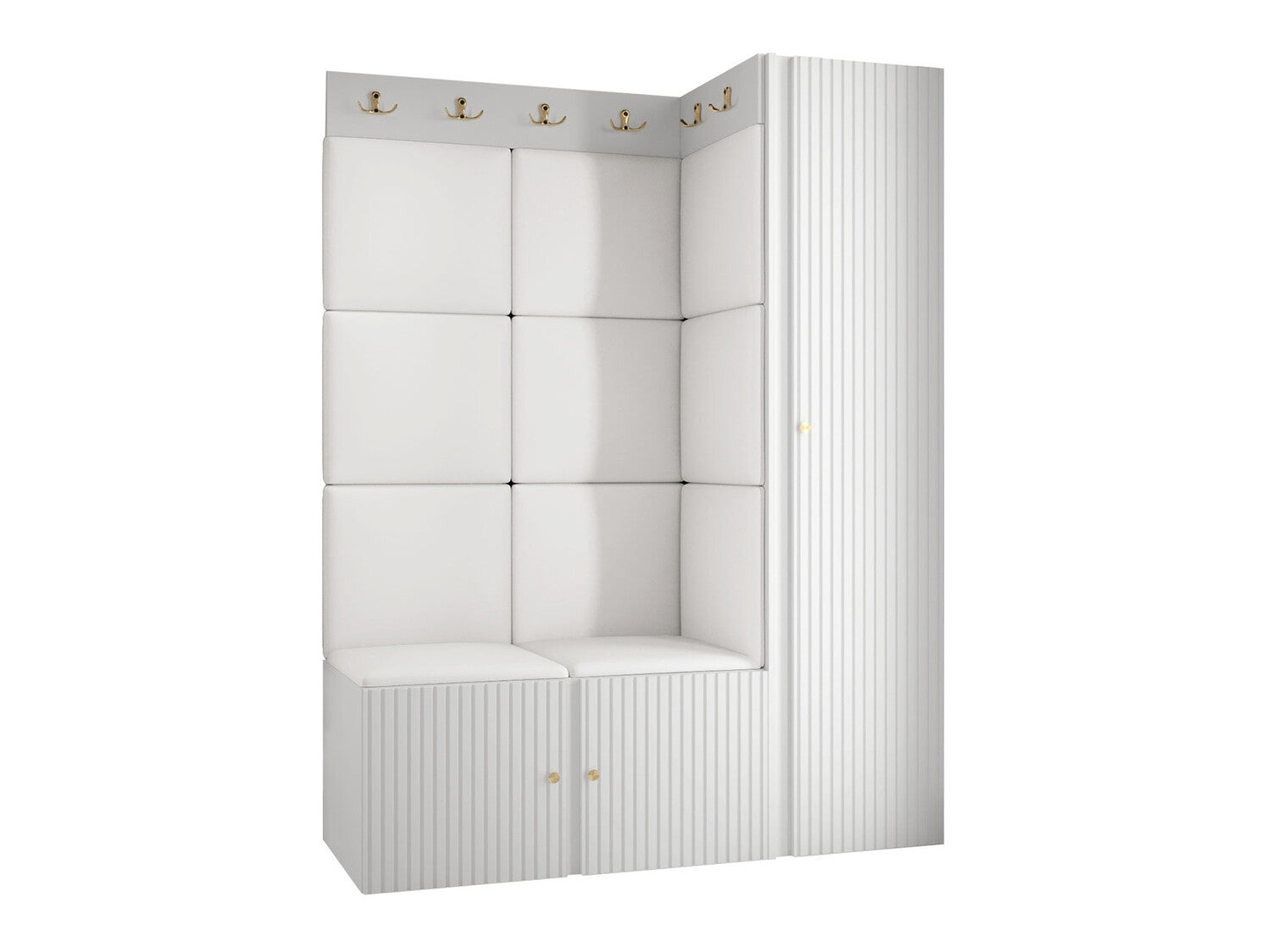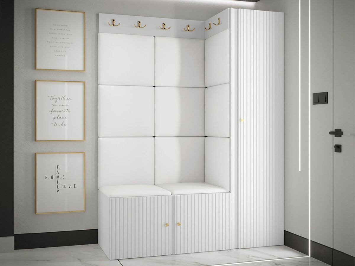 Előszoba garnitúra ORION RYFEL SLIM IX (Towiro), Keret színe: Fehér, Puha falpanel színe: Soft 017