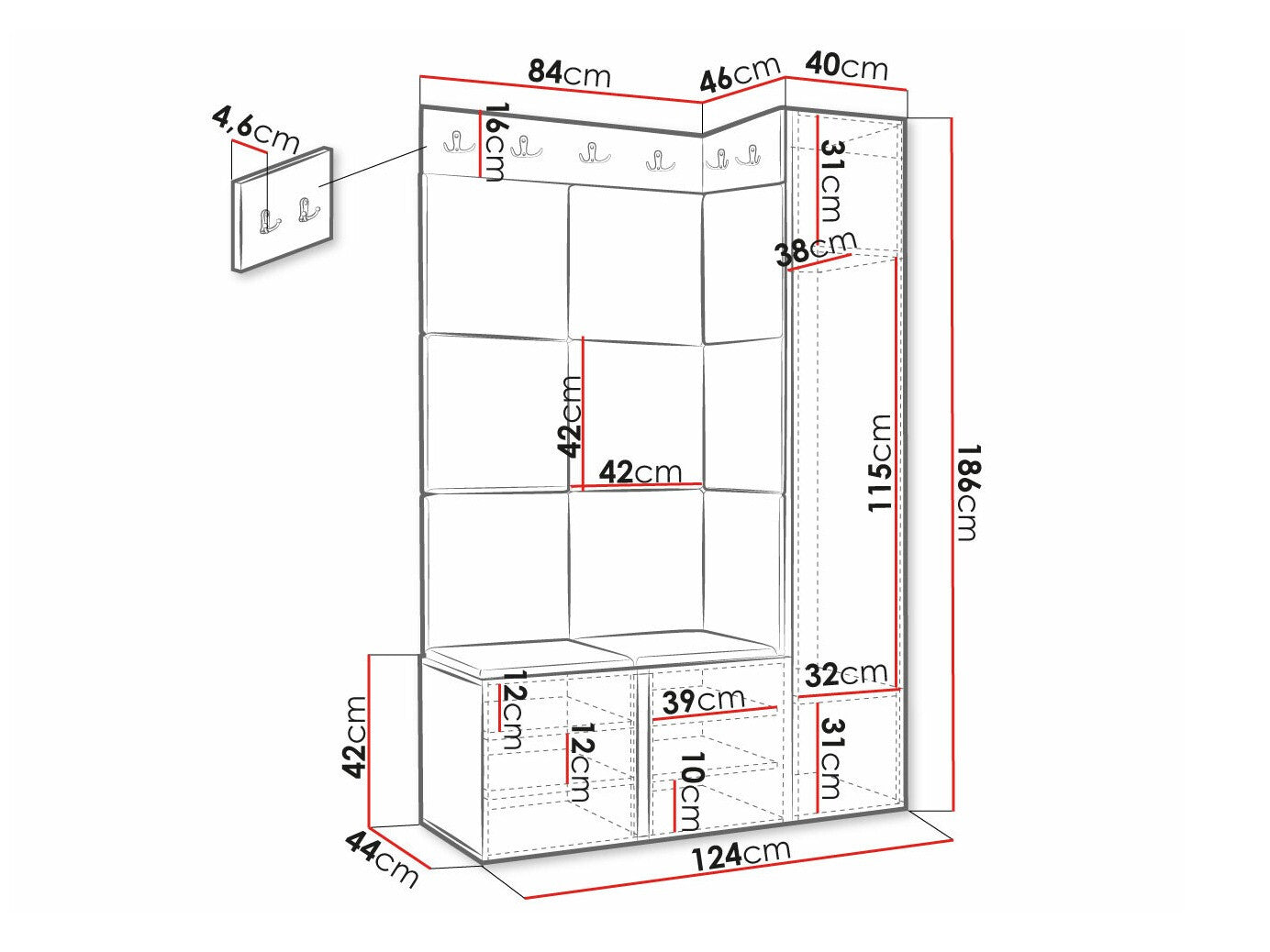 Akasztó méretei16 x 84 x 4.6 x 46 x 4.6 cm