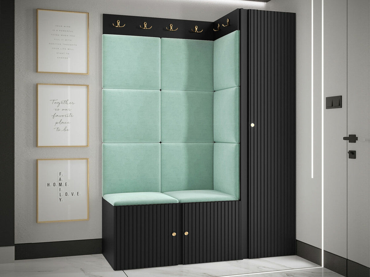Előszoba garnitúra ORION RYFEL SLIM IX (Towiro), Keret színe: Fekete, Puha falpanel színe: Manila 11