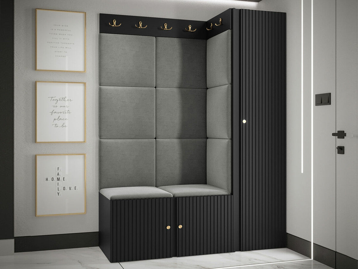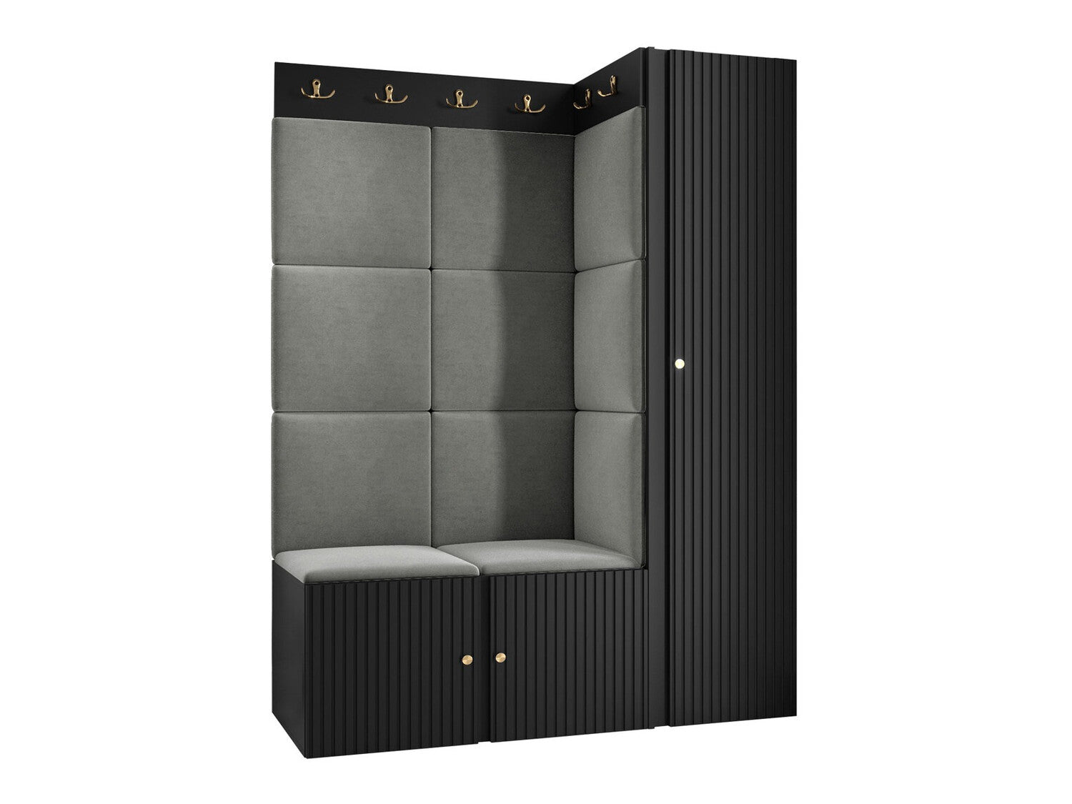 Előszoba garnitúra ORION RYFEL SLIM IX (Towiro), Keret színe: Fekete, Puha falpanel színe: Manila 16