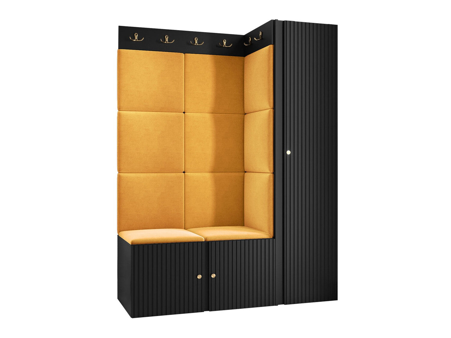 Előszoba garnitúra ORION RYFEL SLIM IX (Towiro), Keret színe: Fekete, Puha falpanel színe: Manila 32