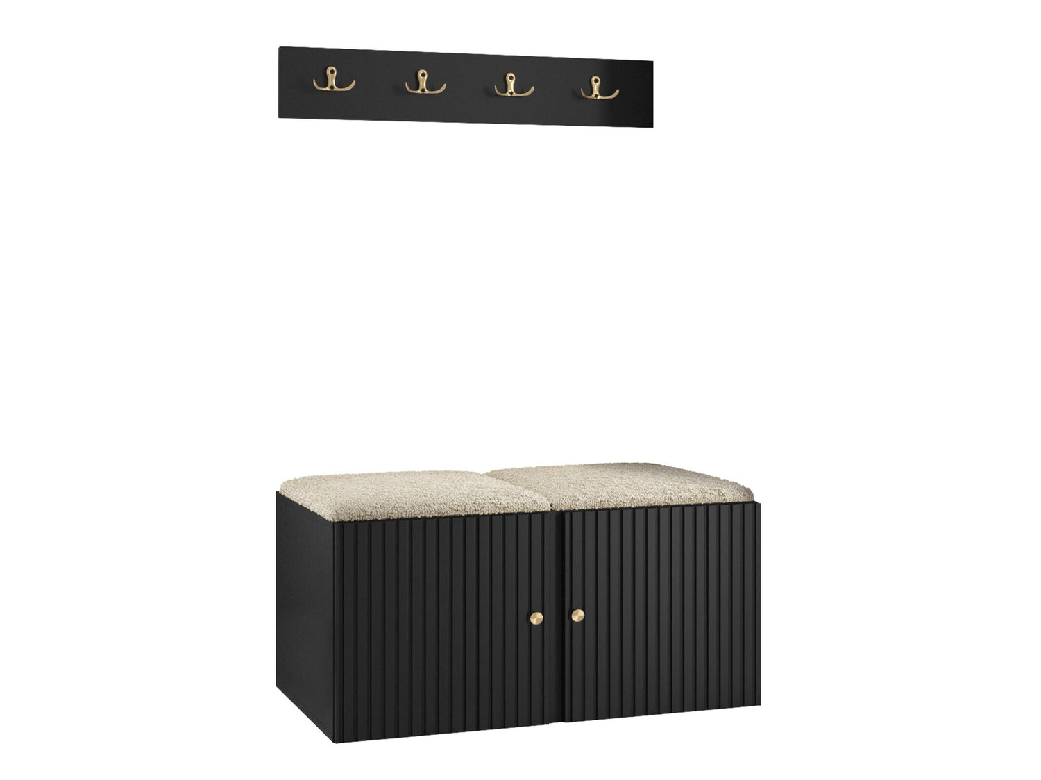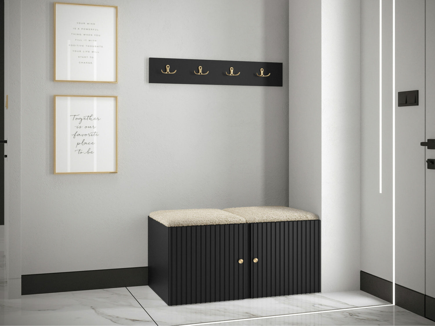 Előszoba garnitúra ORION RYFEL SLIM VI (Towiro), Keret színe: Fekete, Puha falpanel színe: Abriamo 3