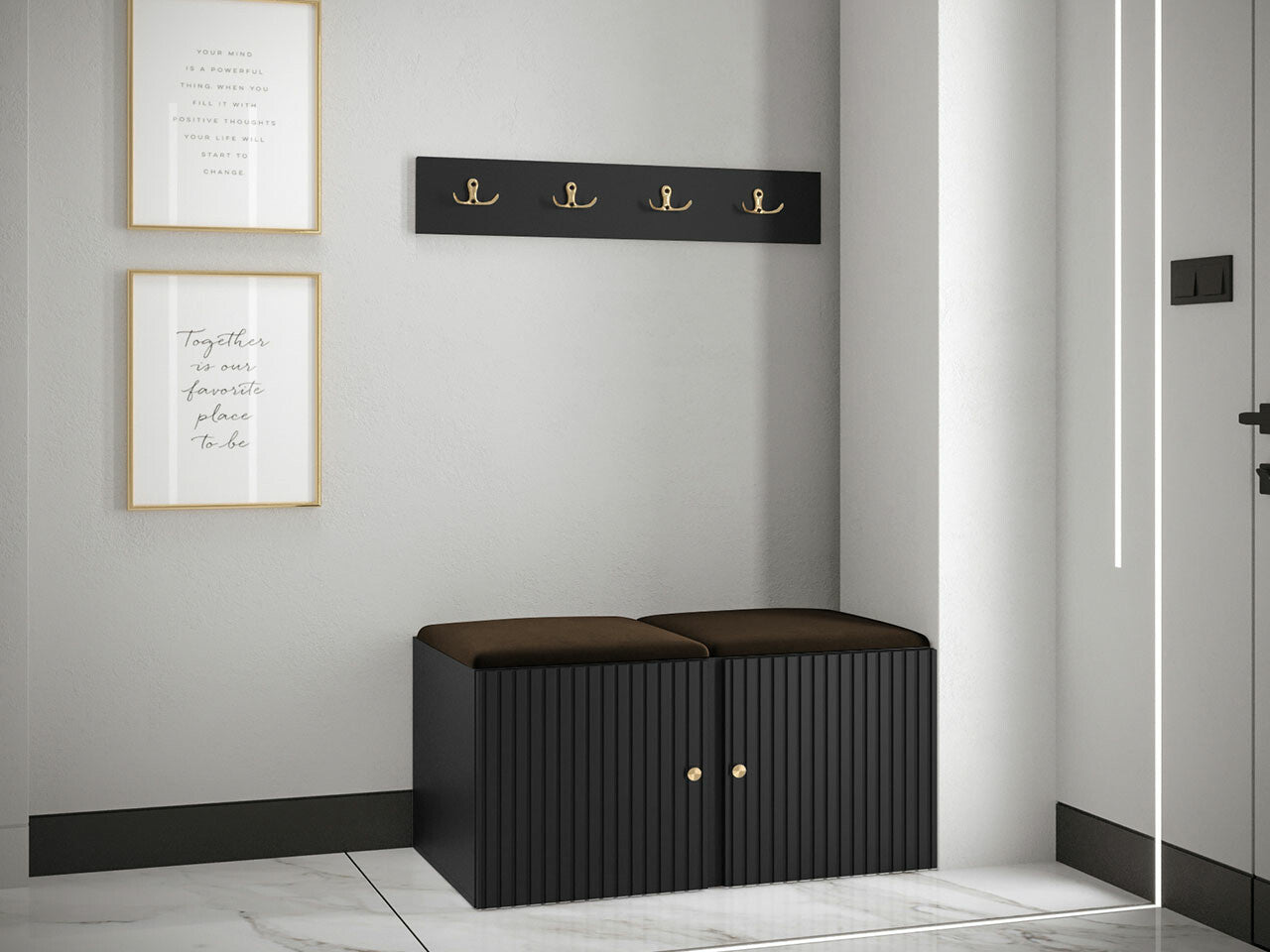 Előszoba garnitúra ORION RYFEL SLIM VI (Towiro), Keret színe: Fekete, Puha falpanel színe: Manila 04