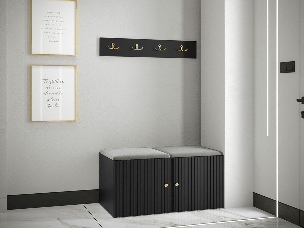 Előszoba garnitúra ORION RYFEL SLIM VI (Towiro), Keret színe: Fekete, Puha falpanel színe: Manila 16