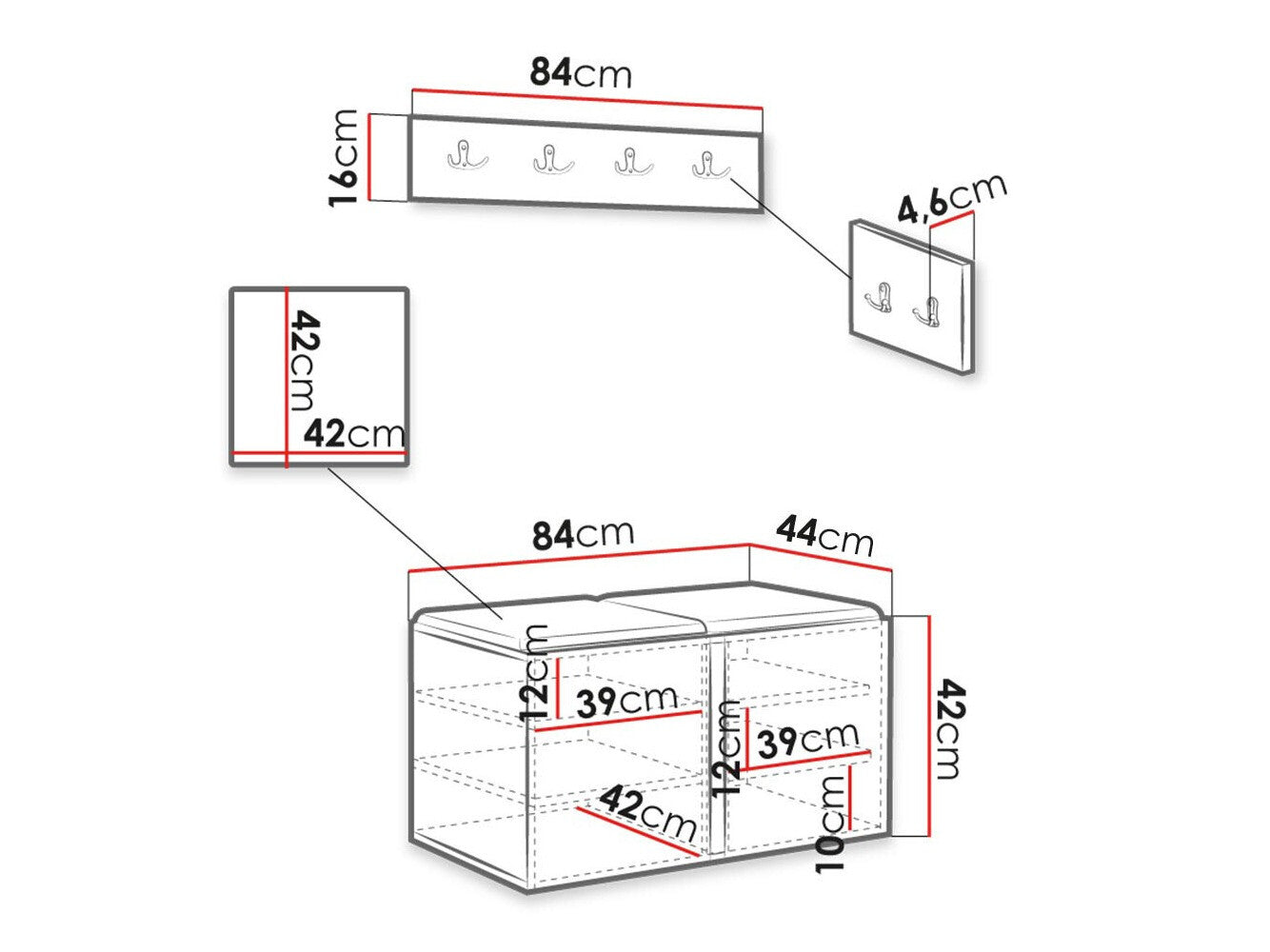 Cipődoboz méretei42 x 84 x 44 cm