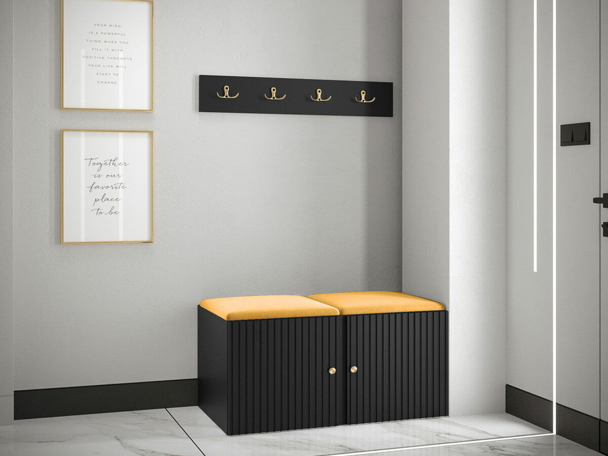 Előszoba garnitúra ORION RYFEL SLIM VI (Towiro), Keret színe: Fekete, Puha falpanel színe: Manila 32
